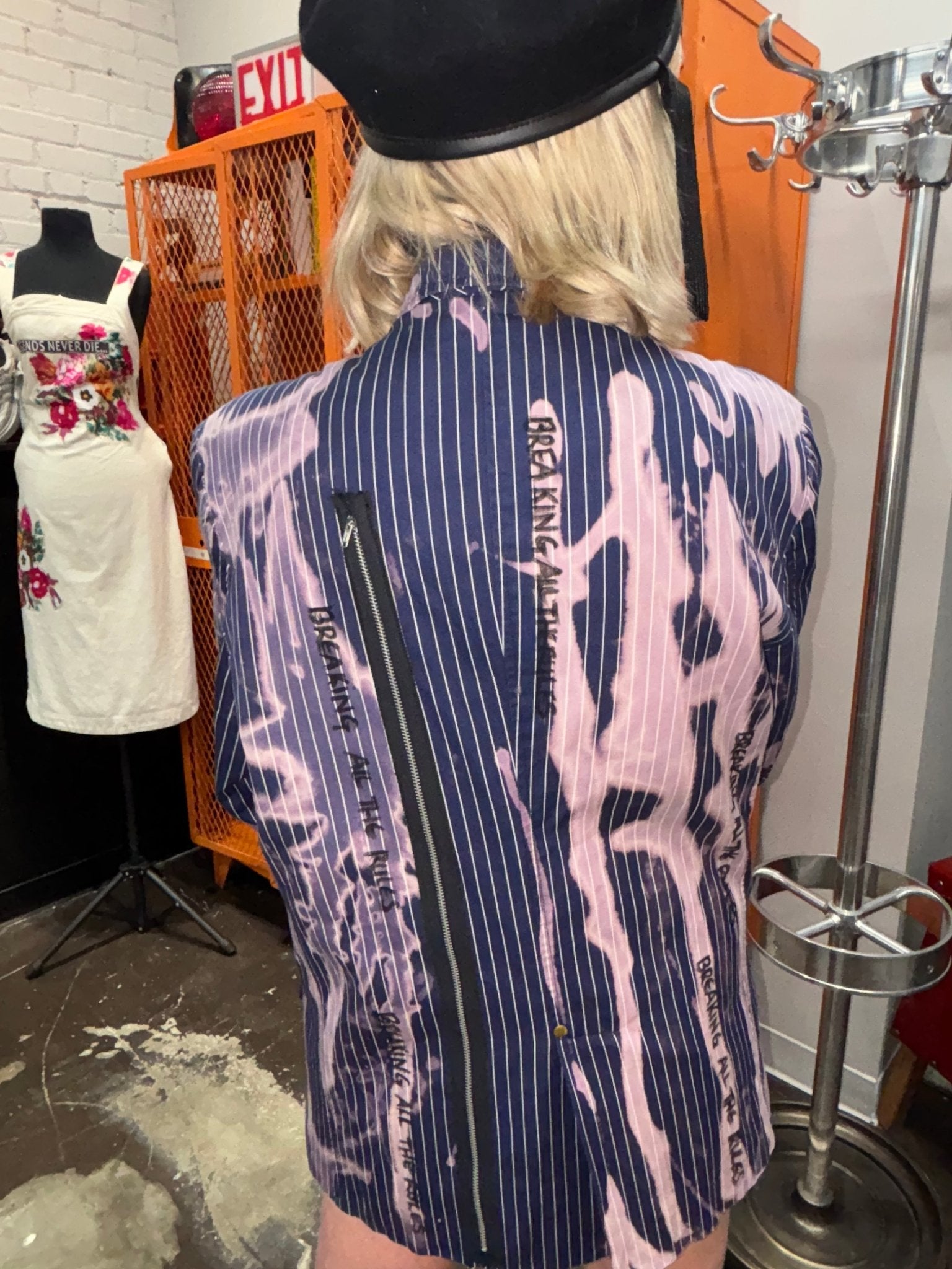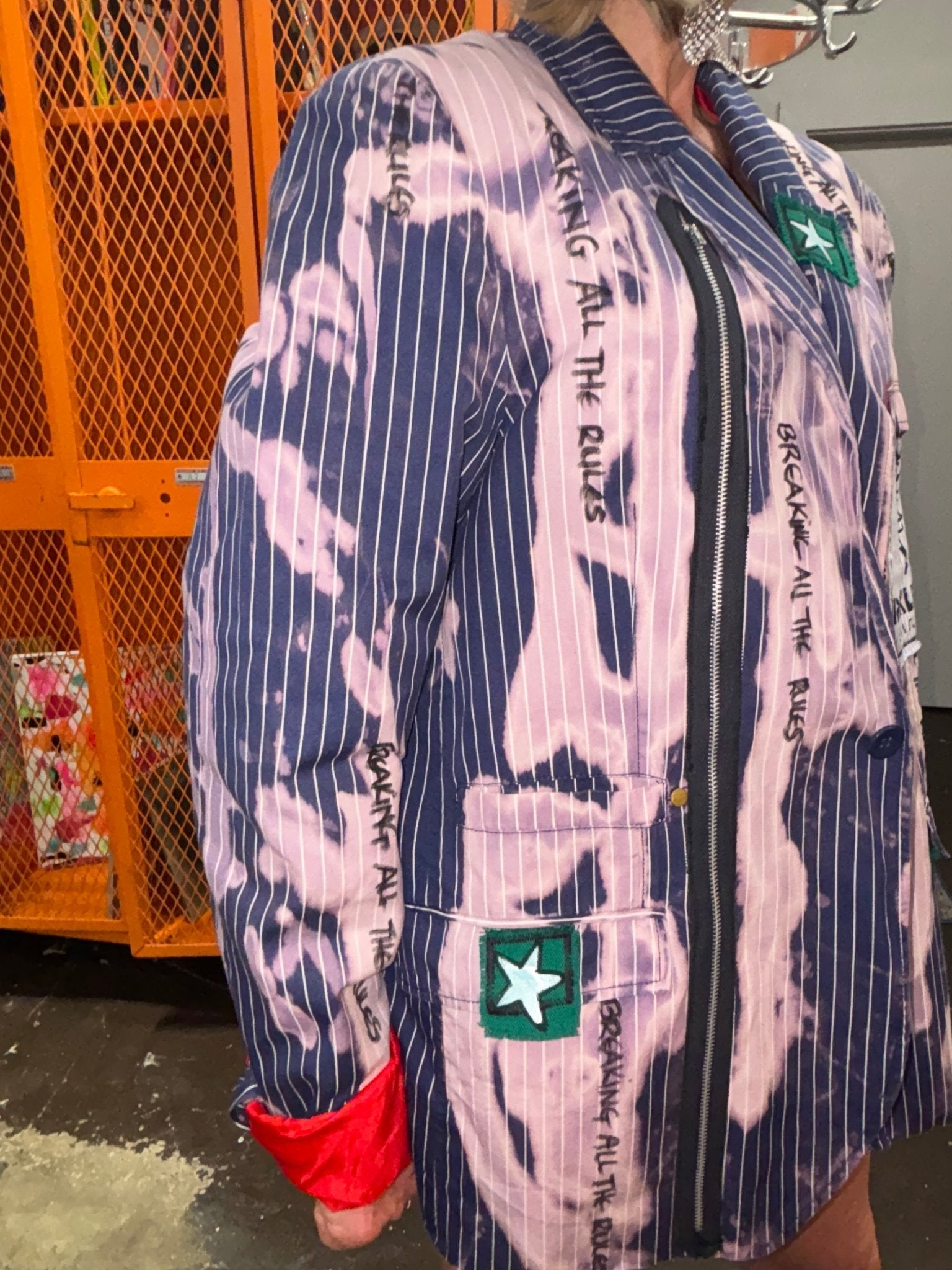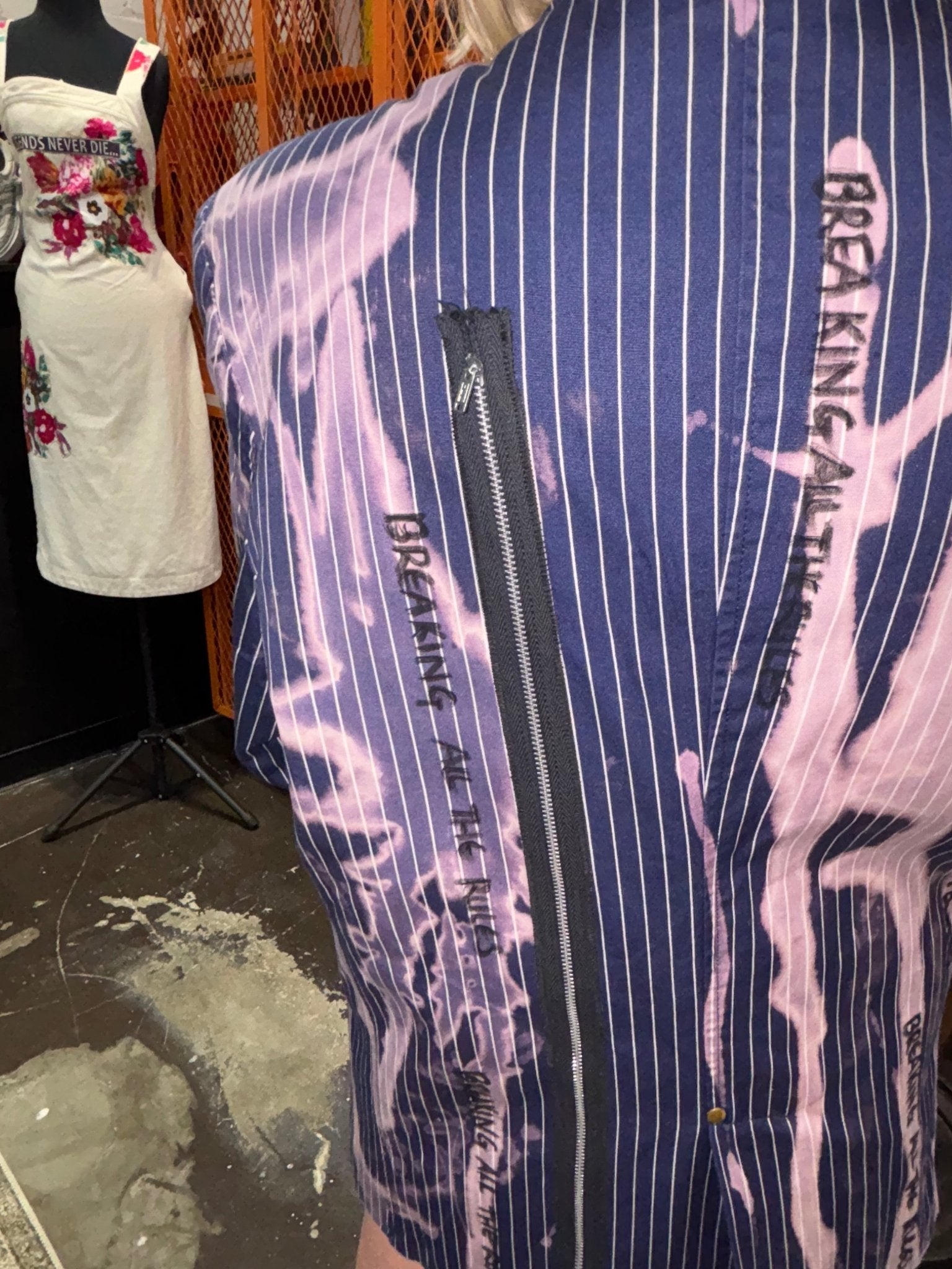 Blue Pinstripe Bleach Zipper Punk Jacket - Breaking All The Rules