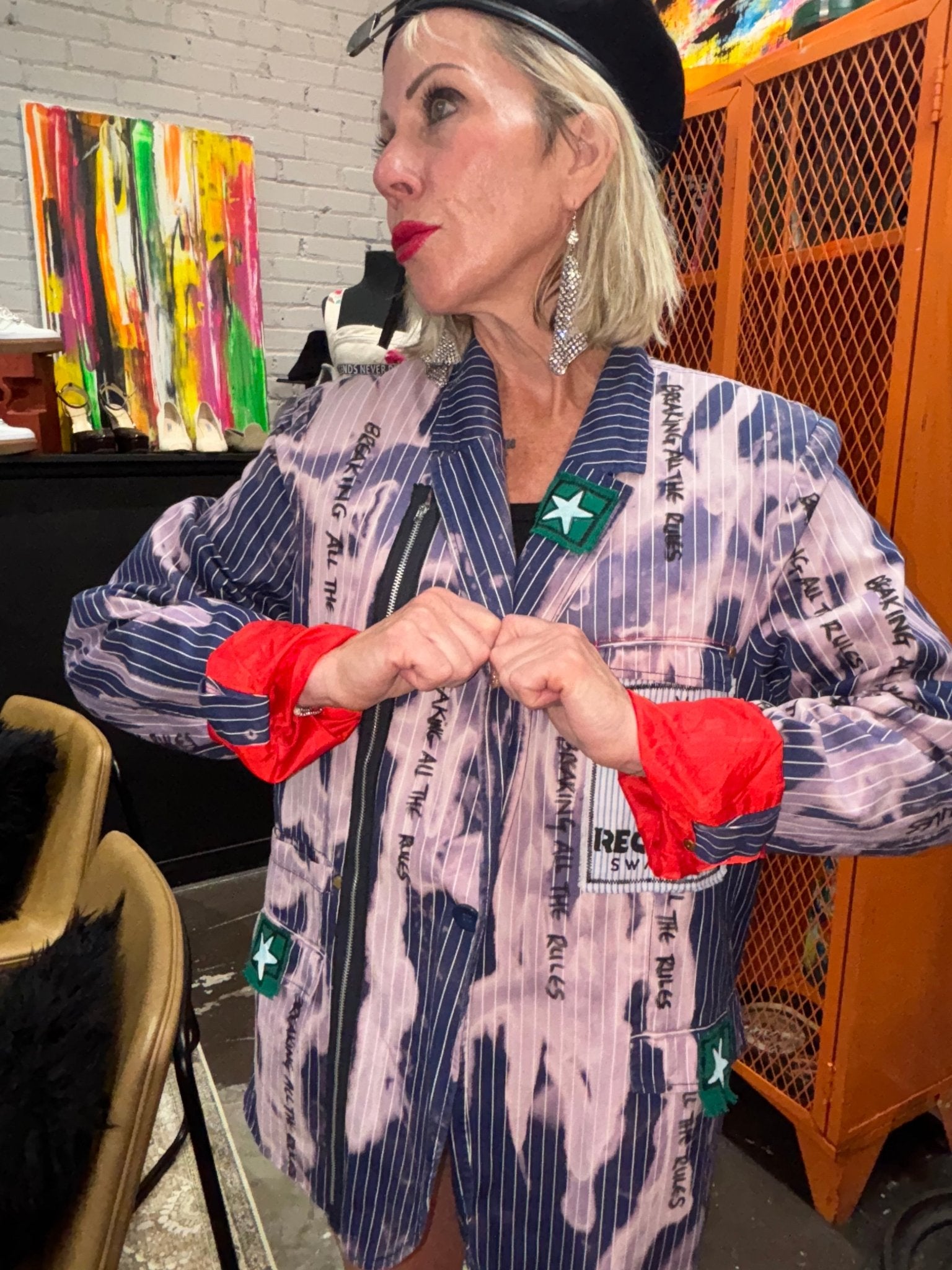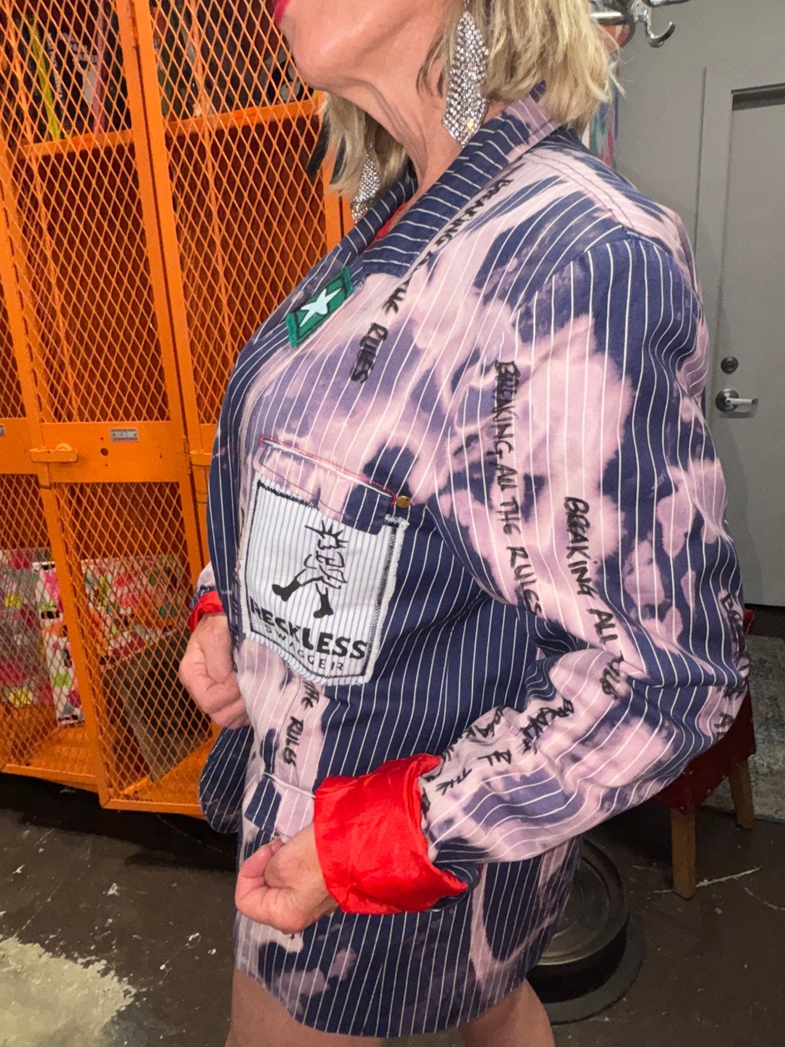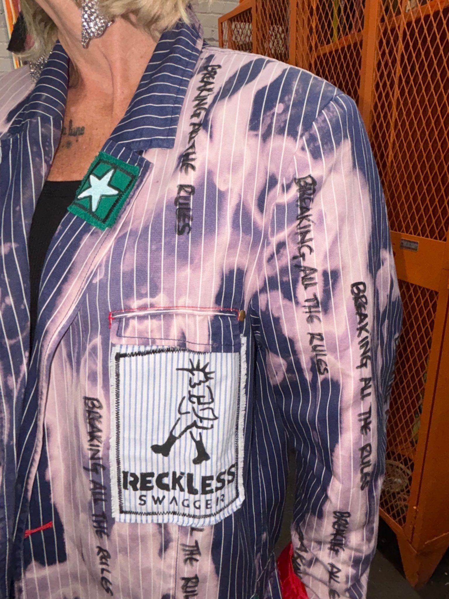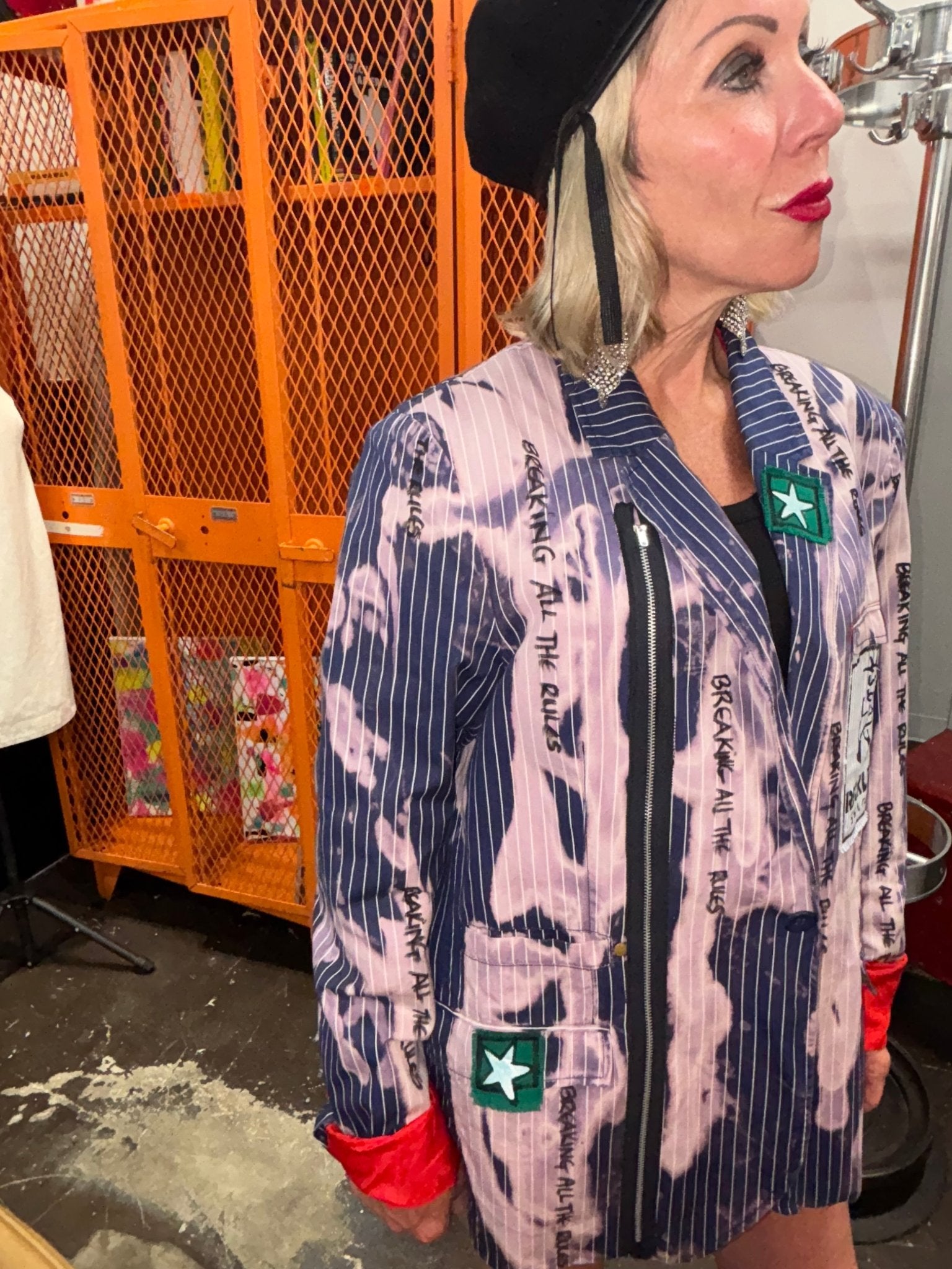 Blue Pinstripe Bleach Zipper Punk Jacket - Breaking All The Rules