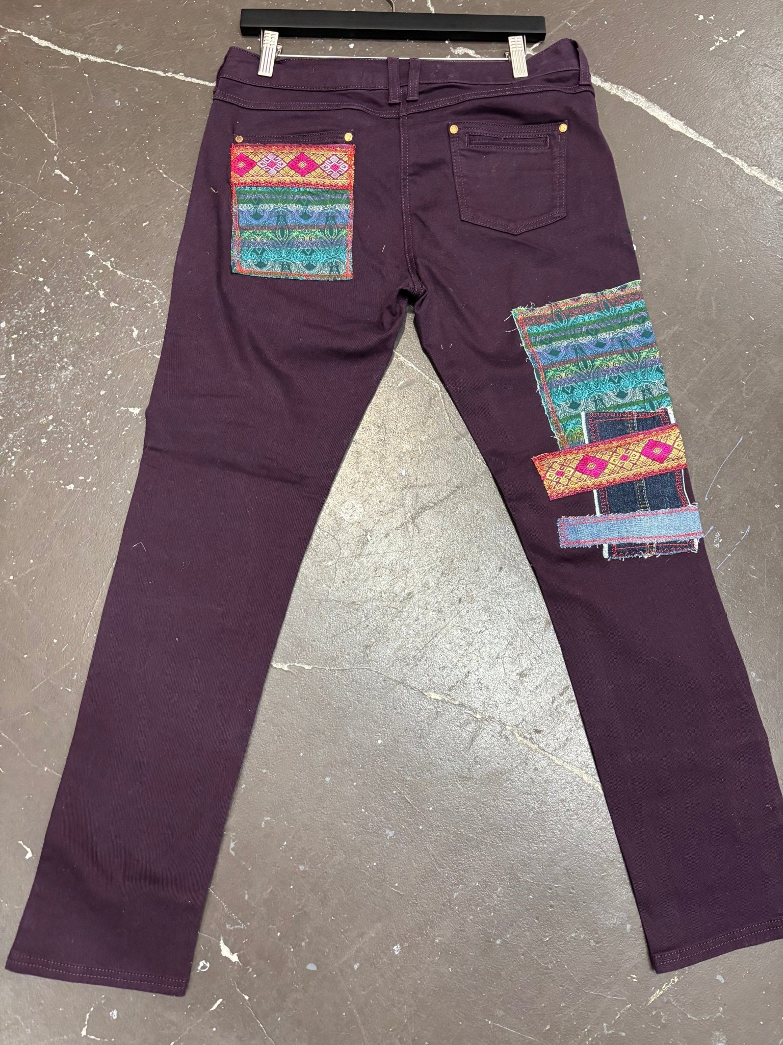Burgundy Jewels - Premium Denim Jeans with India Patches