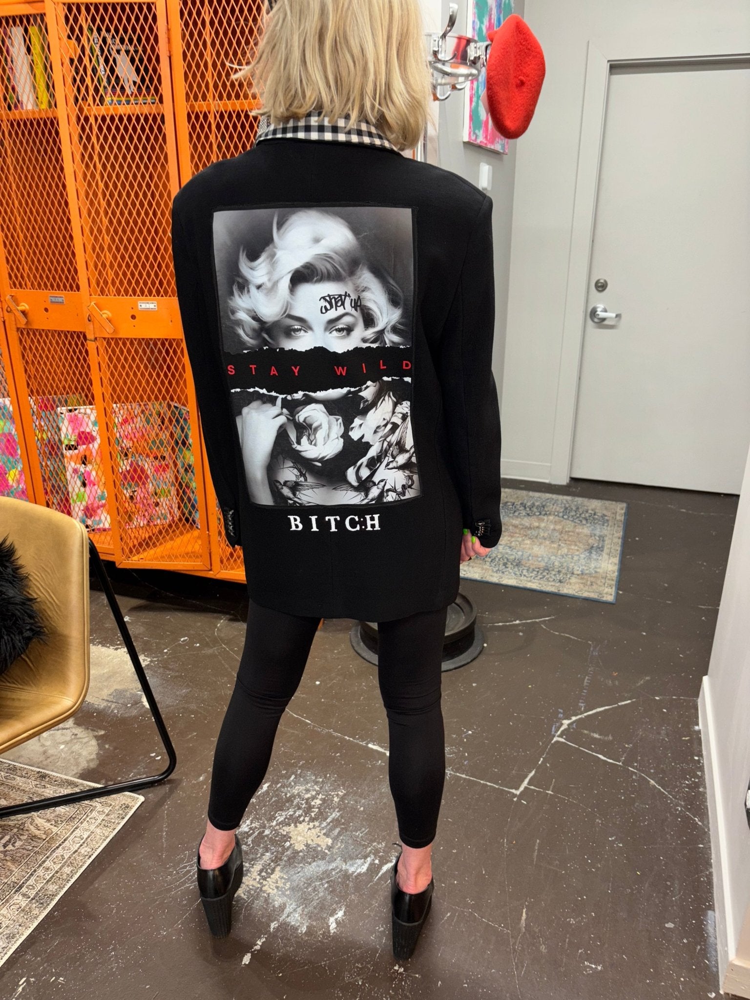 Gingham Checkered Collar Marilyn 'Stay Wild' Edgy Jacket - Punk Rock Style