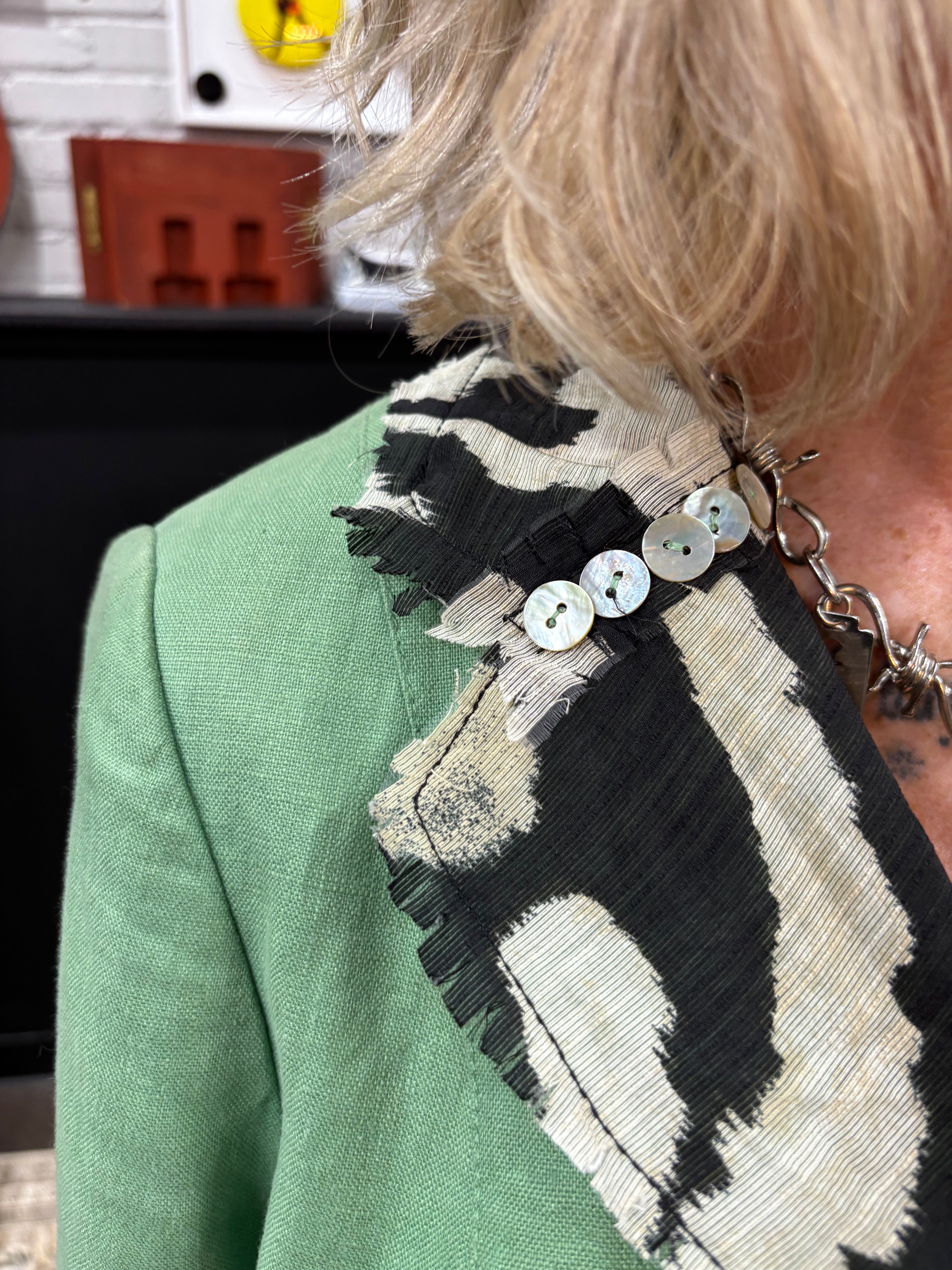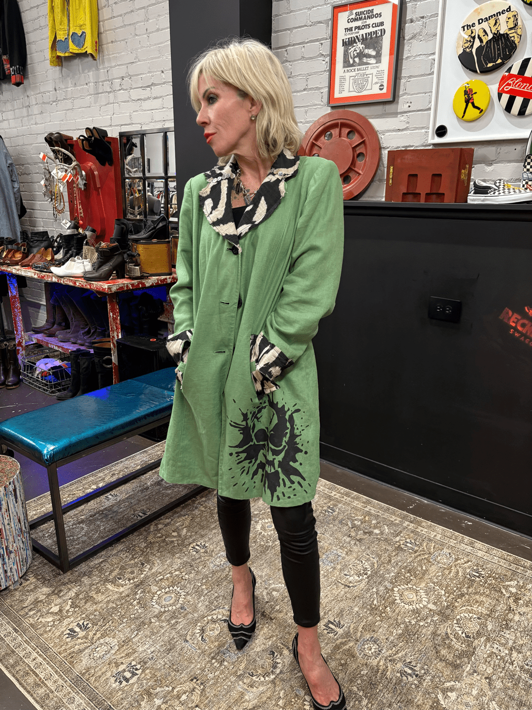 Green Skull Ikat Punk Jacket - B&W Sleeves & Contrast Bows