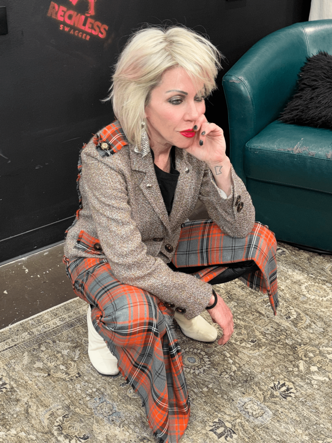 With sharp tailoring and bold tartan fabrics, this suit juxtaposes tradition and audacity, creating a silhouette that commands attention and exudes rebellious sophistication.