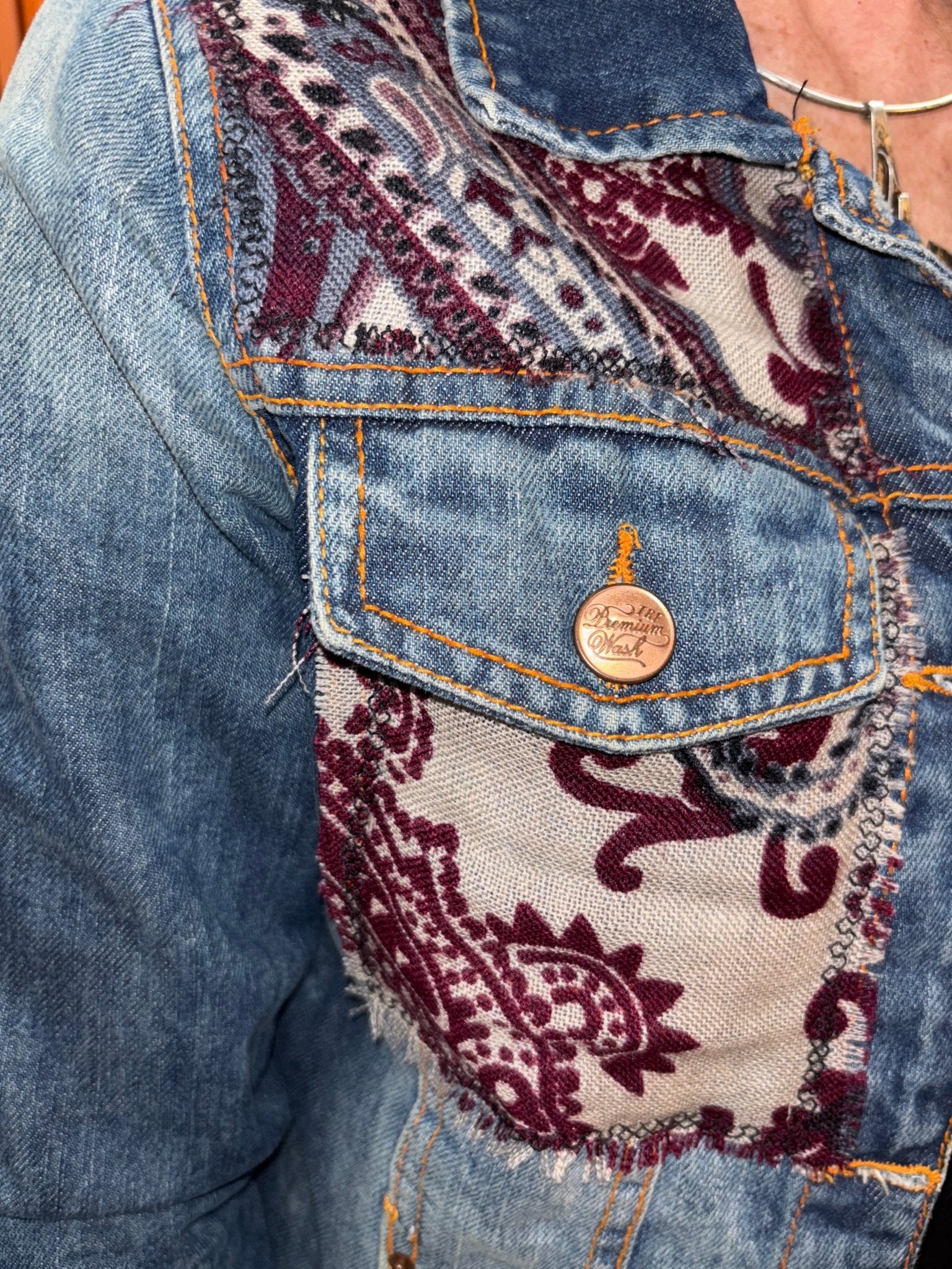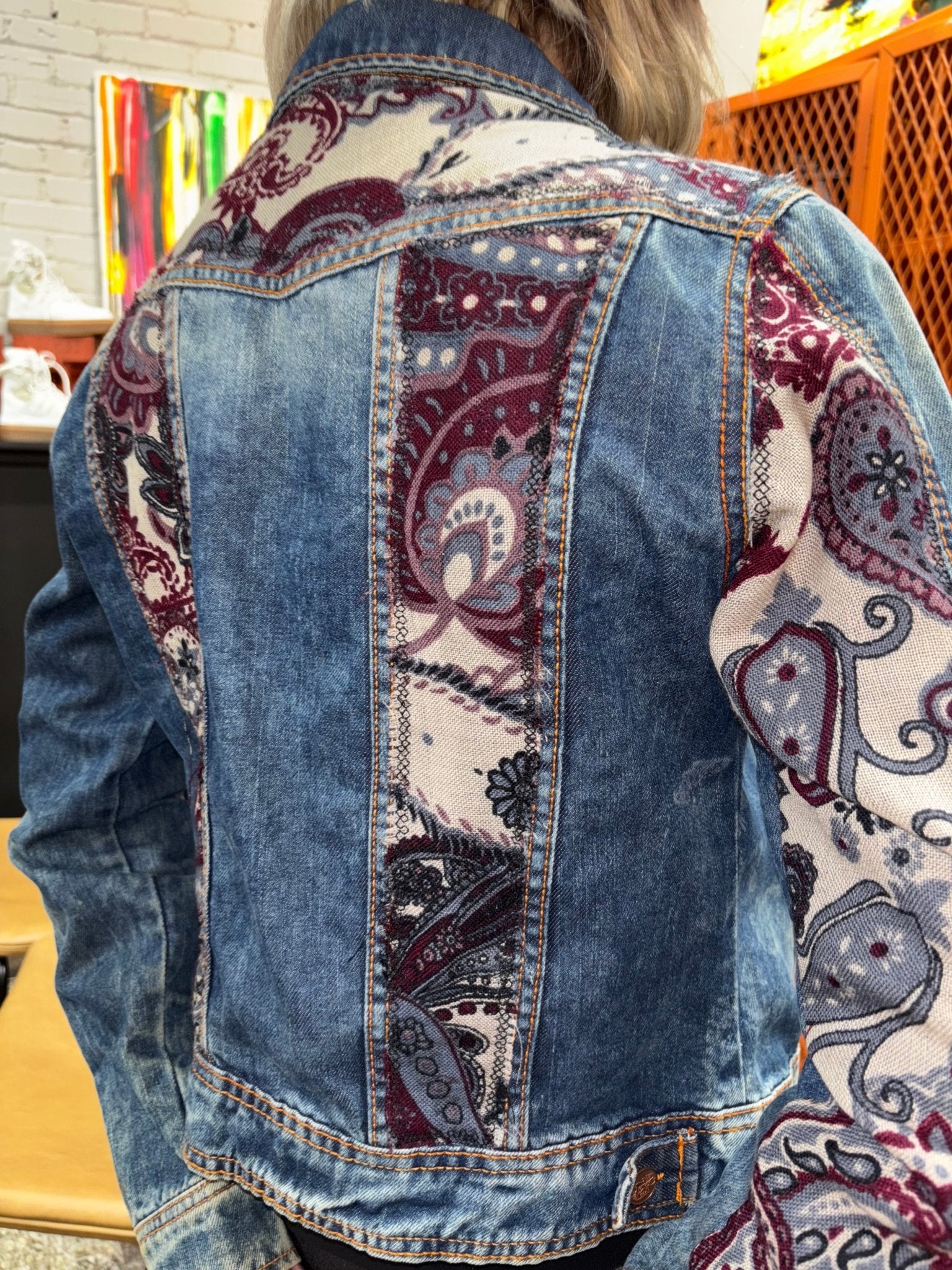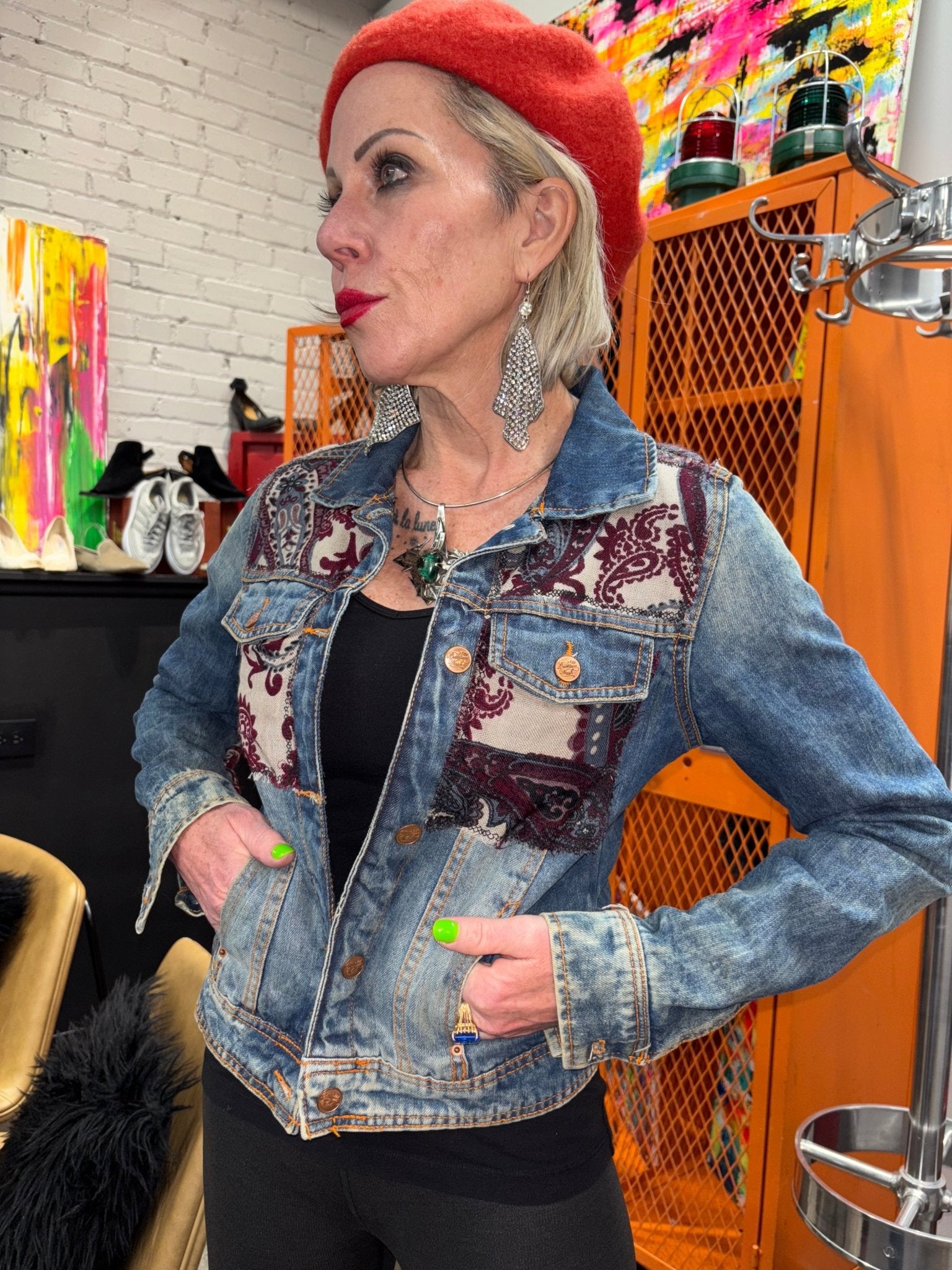 Denim Jacket Plum Paisley Details - Rock Ready Statement Piece