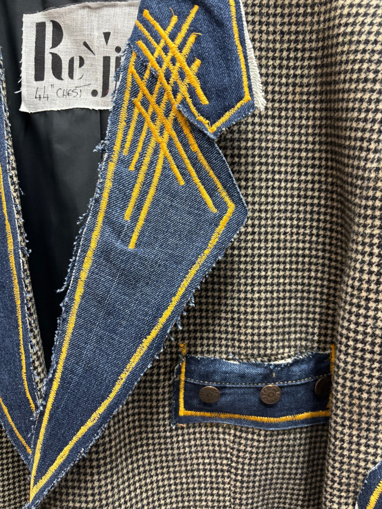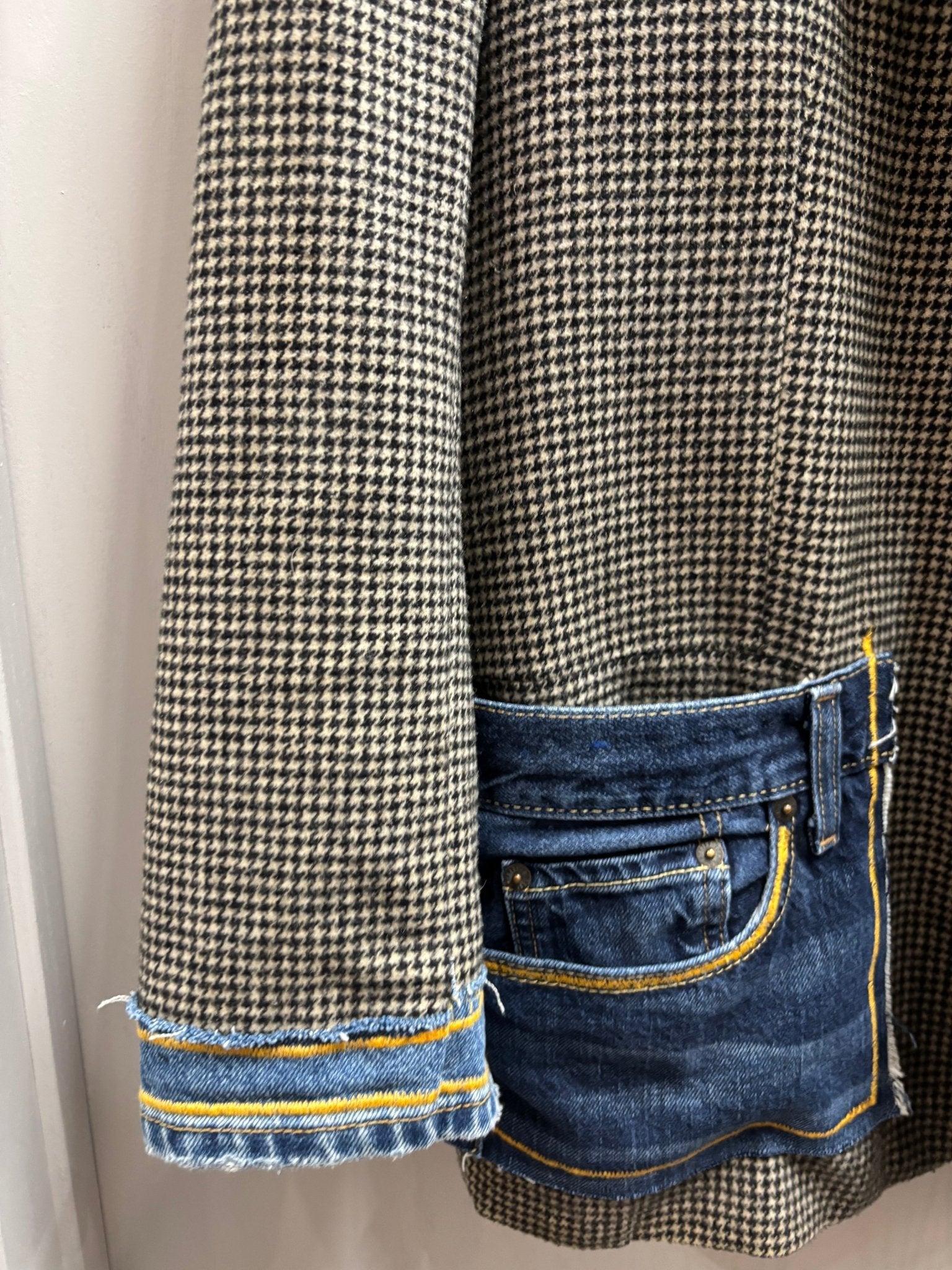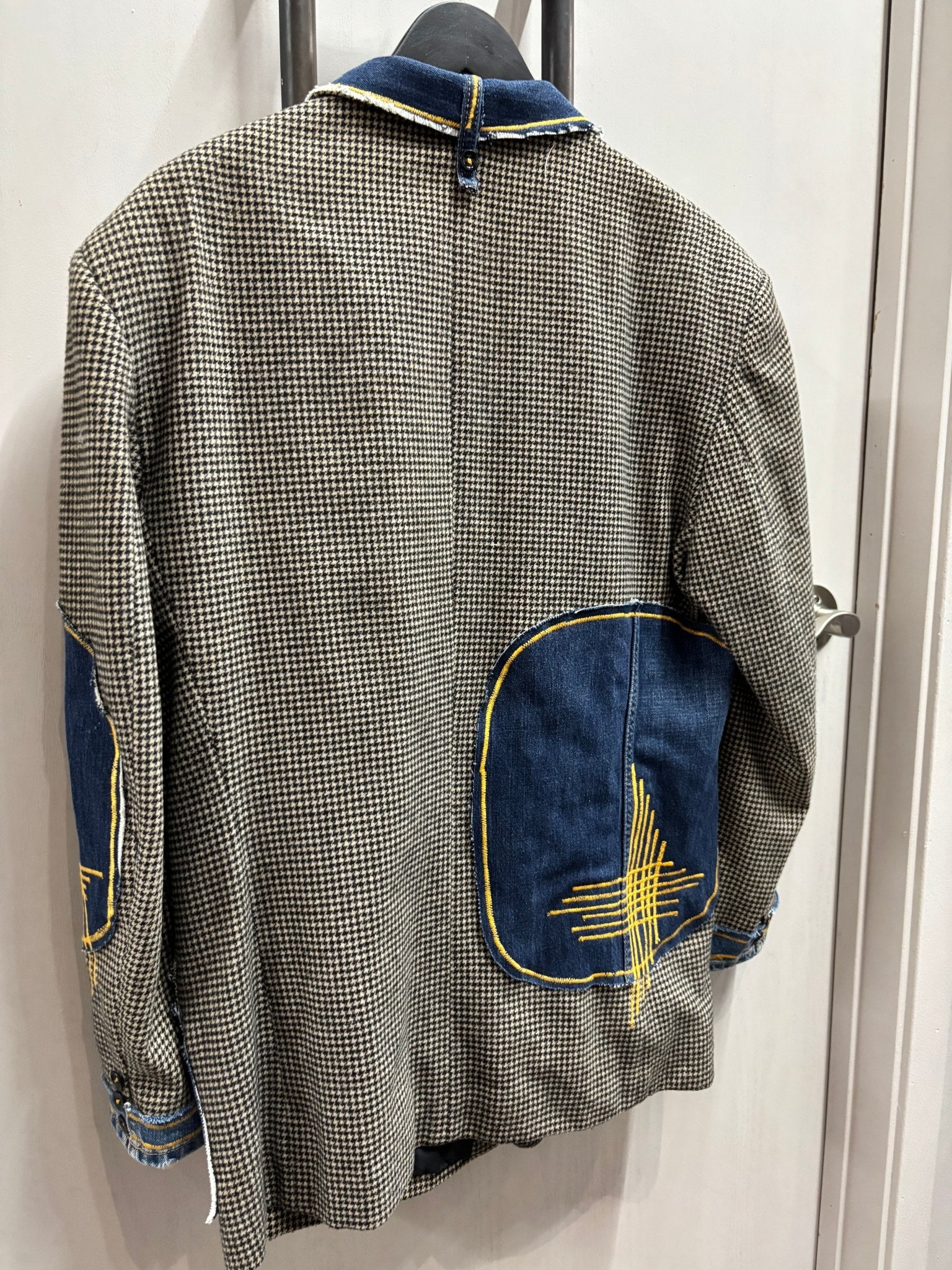 Herringbone Punk Blazer – Denim Lapel & Pocket Mashup