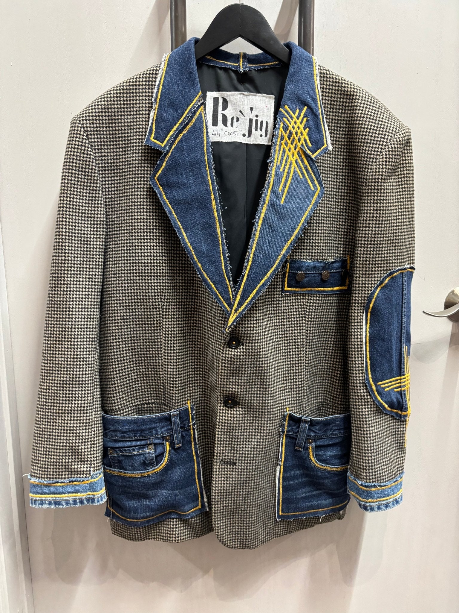 Herringbone Punk Blazer – Denim Lapel & Pocket Mashup - Reckless Swagger