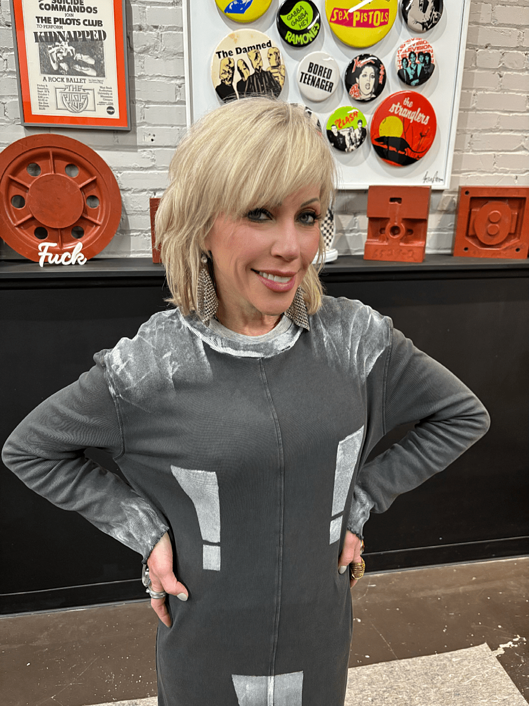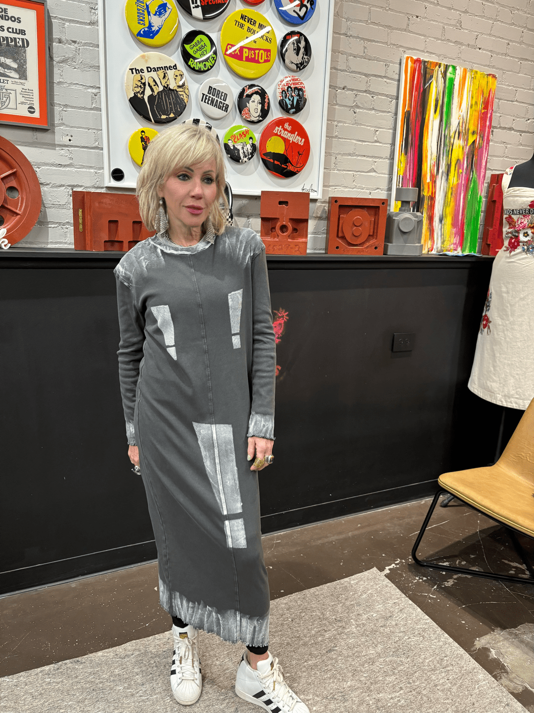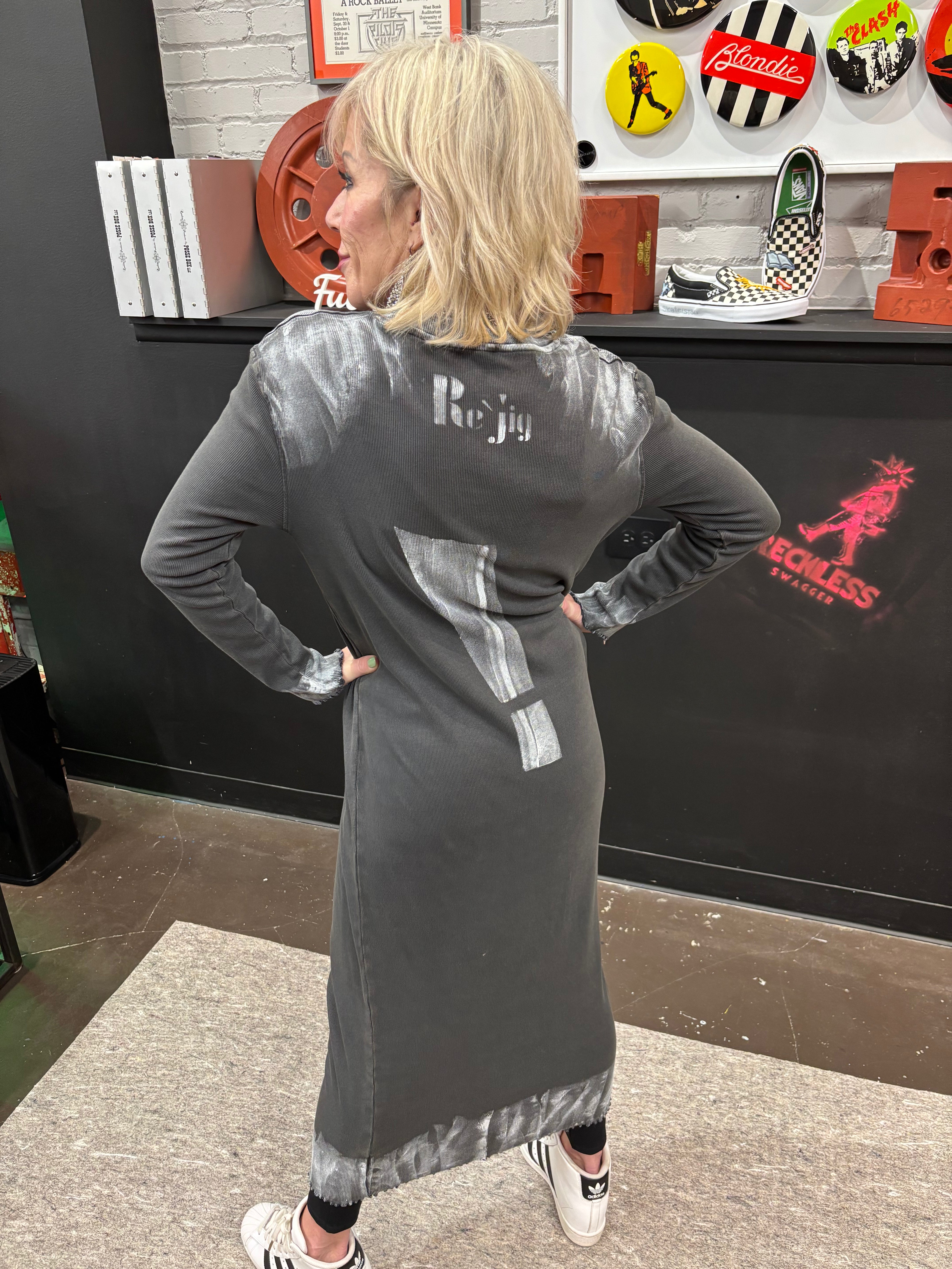 Painted Grey Maxi Punk Dress - Exclamation Mark Statement Piece