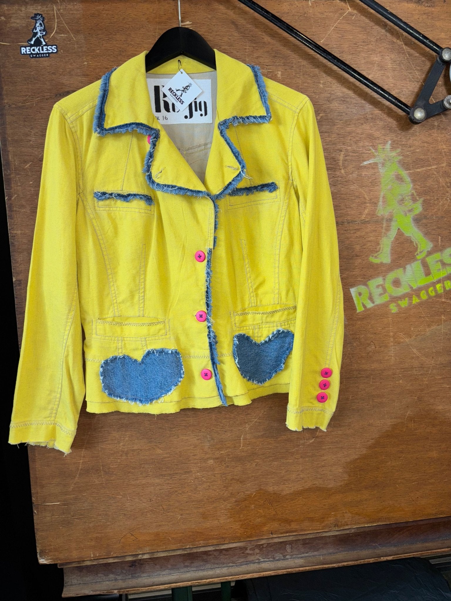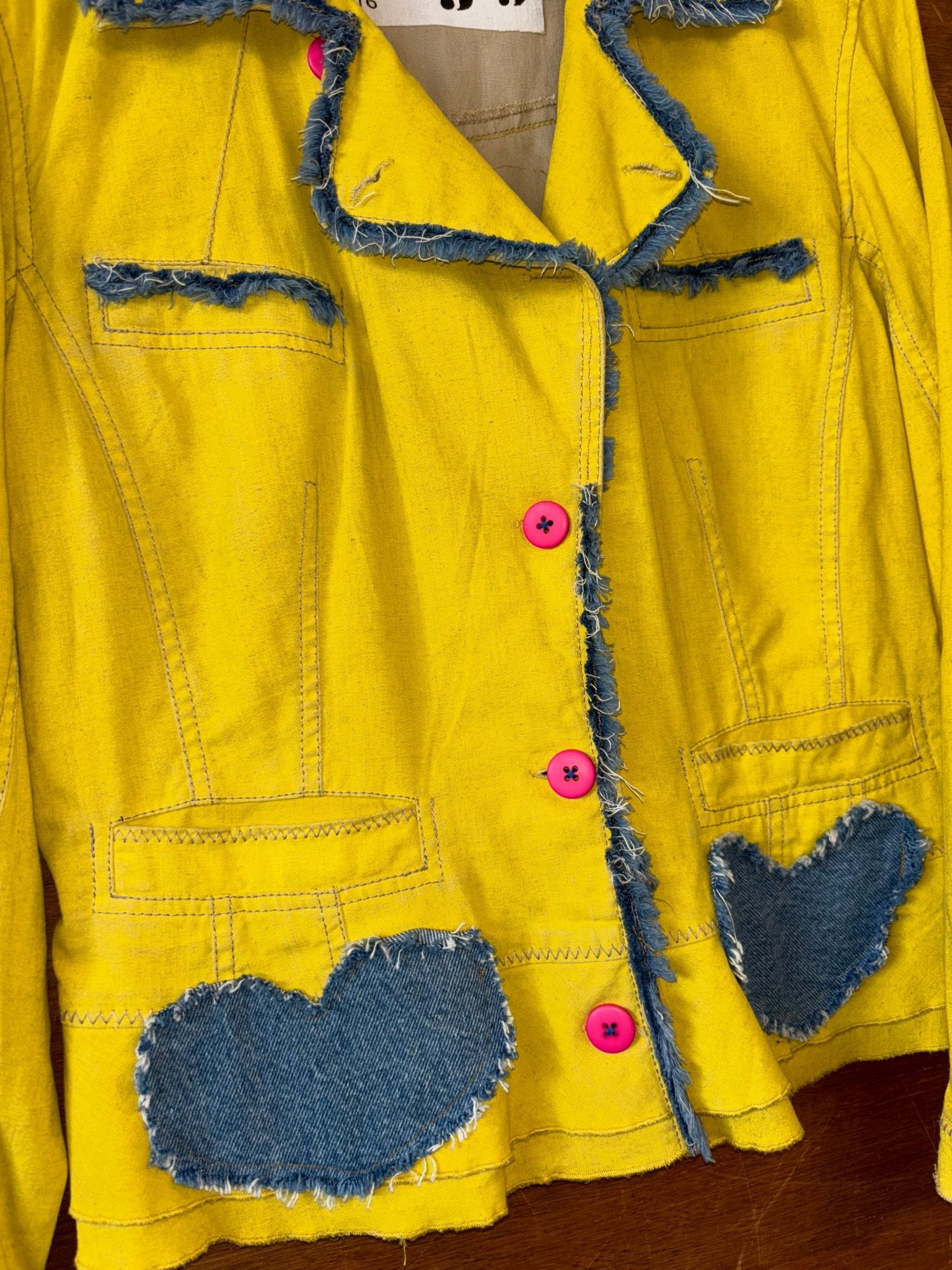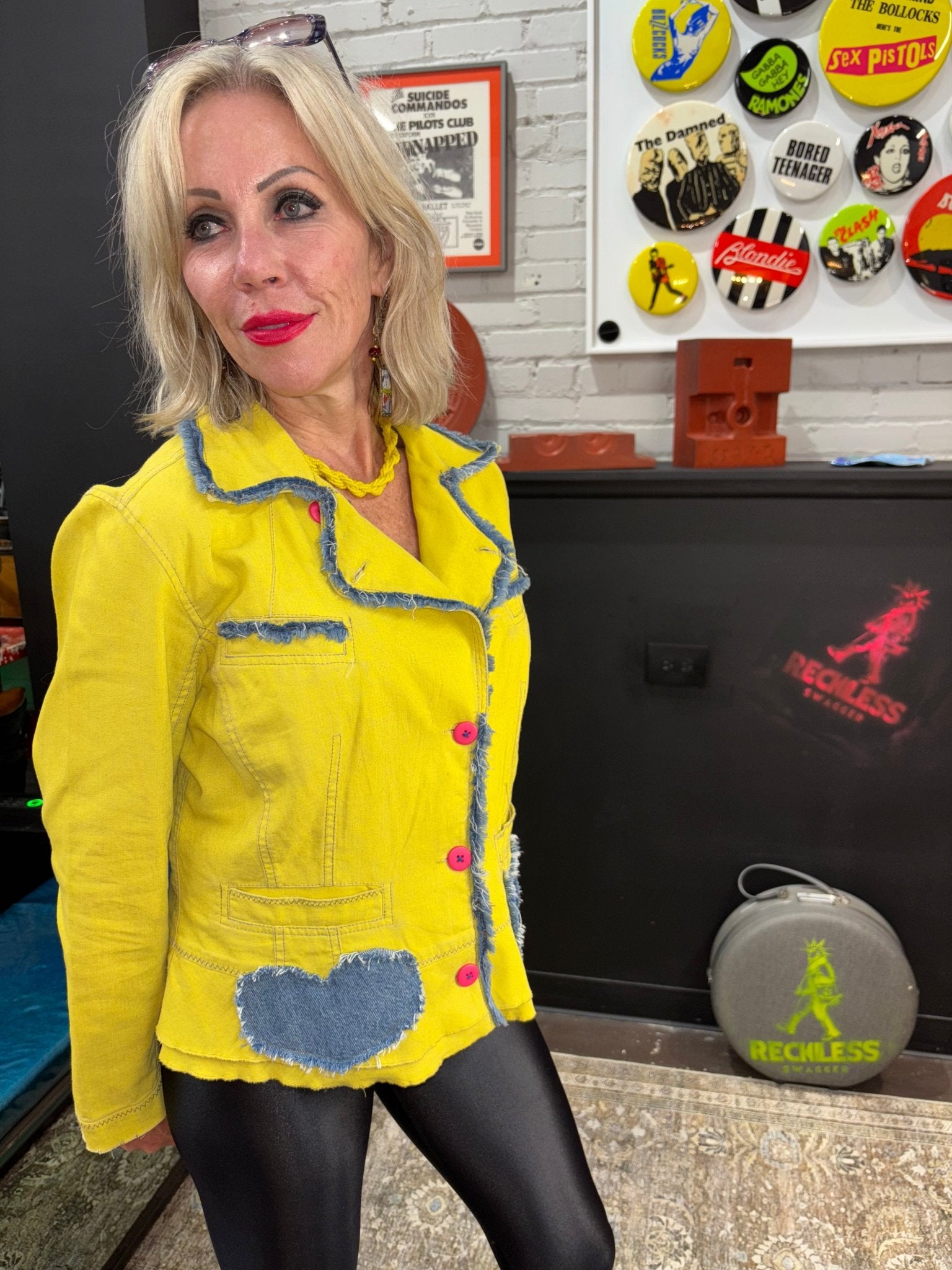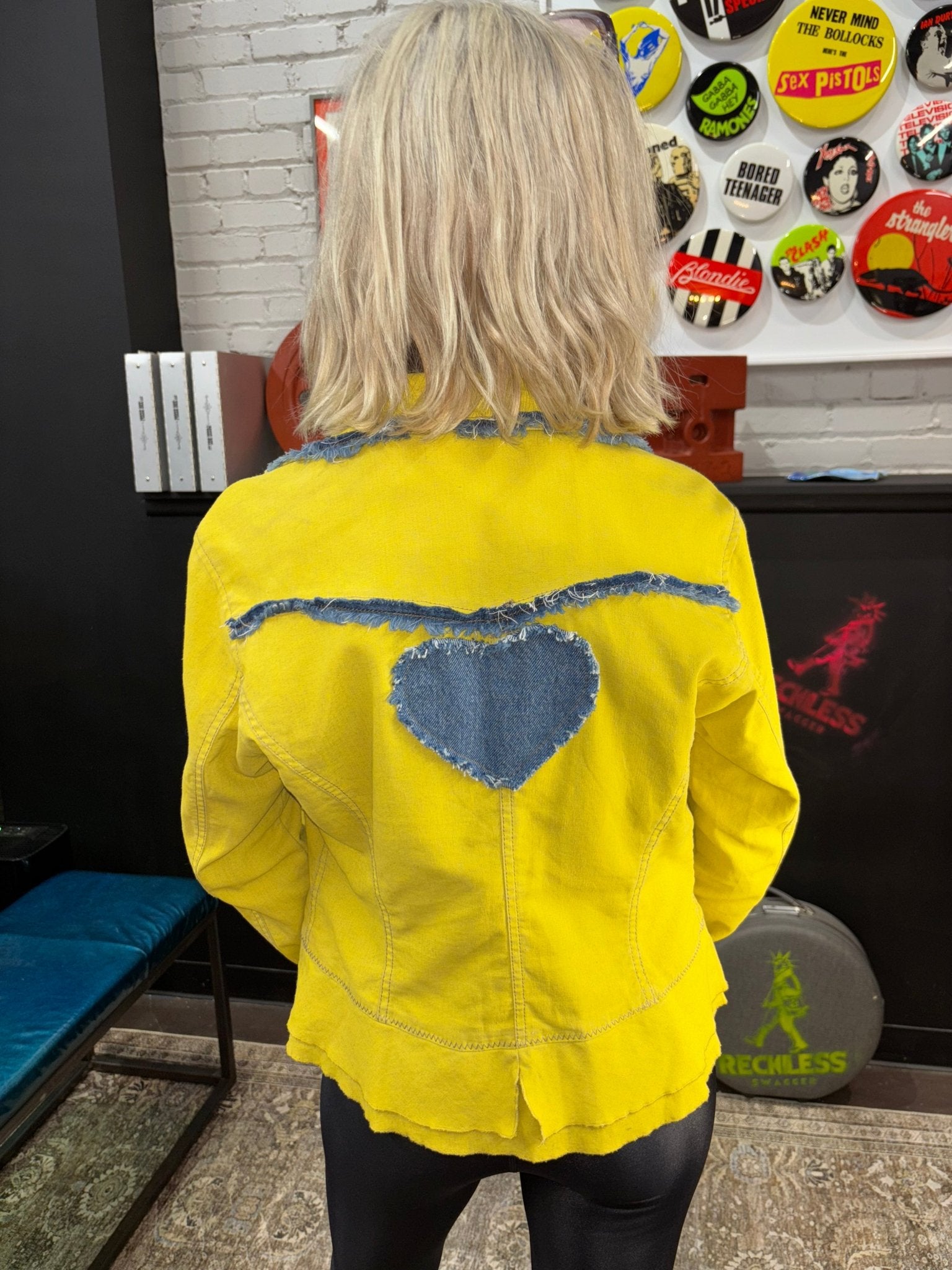 Punk Twist on Yellow Jean Jacket - All Hearts