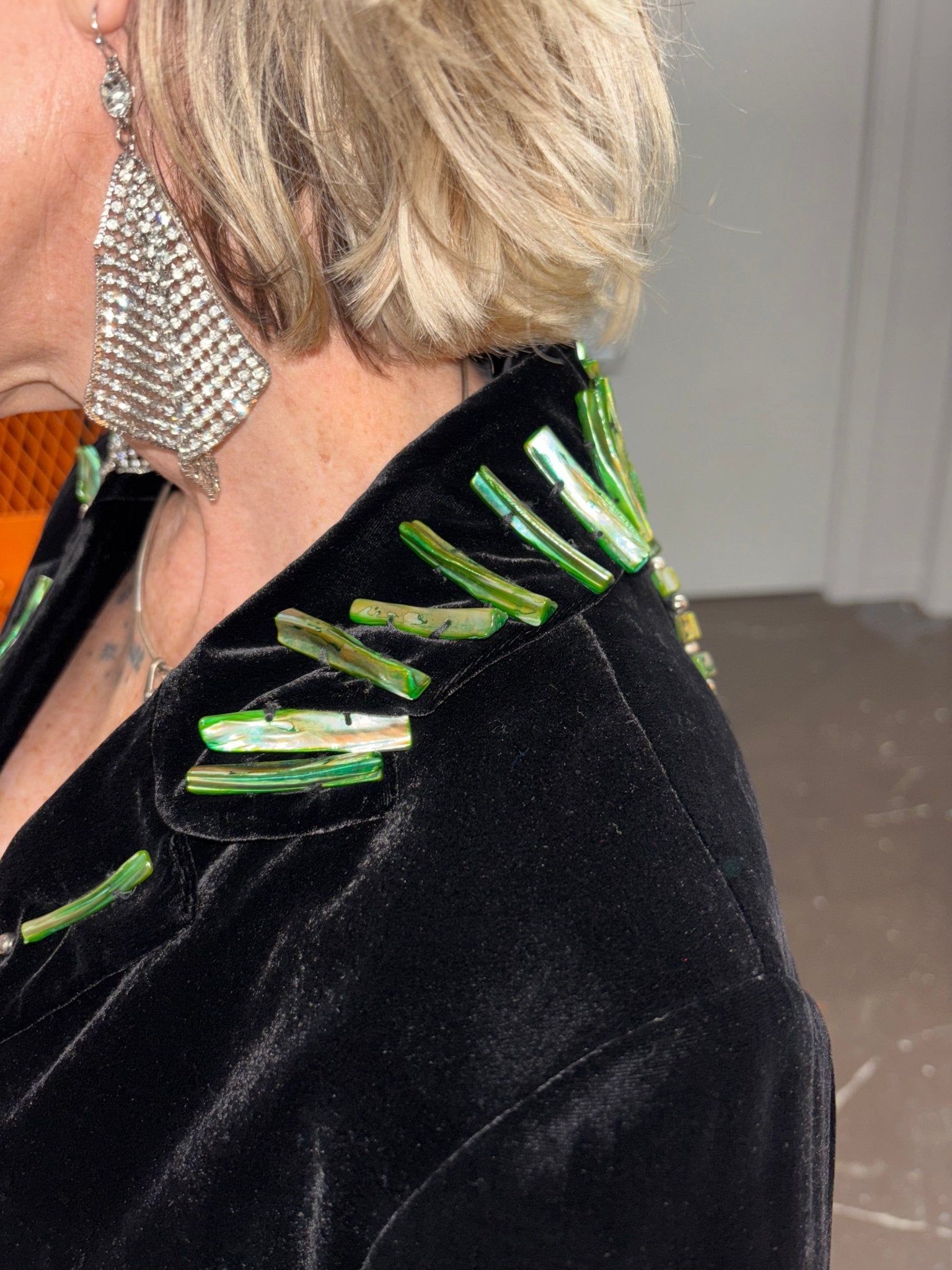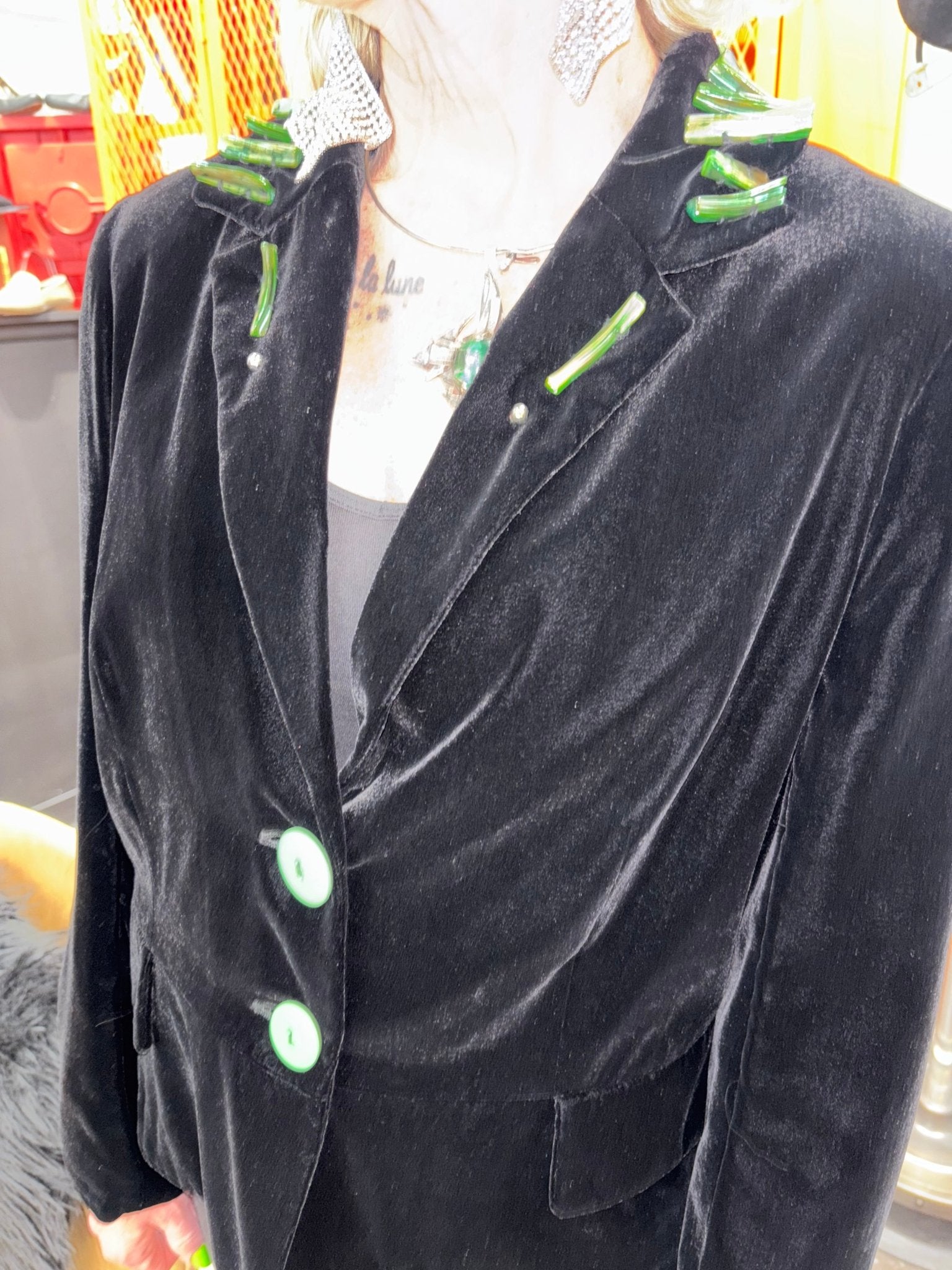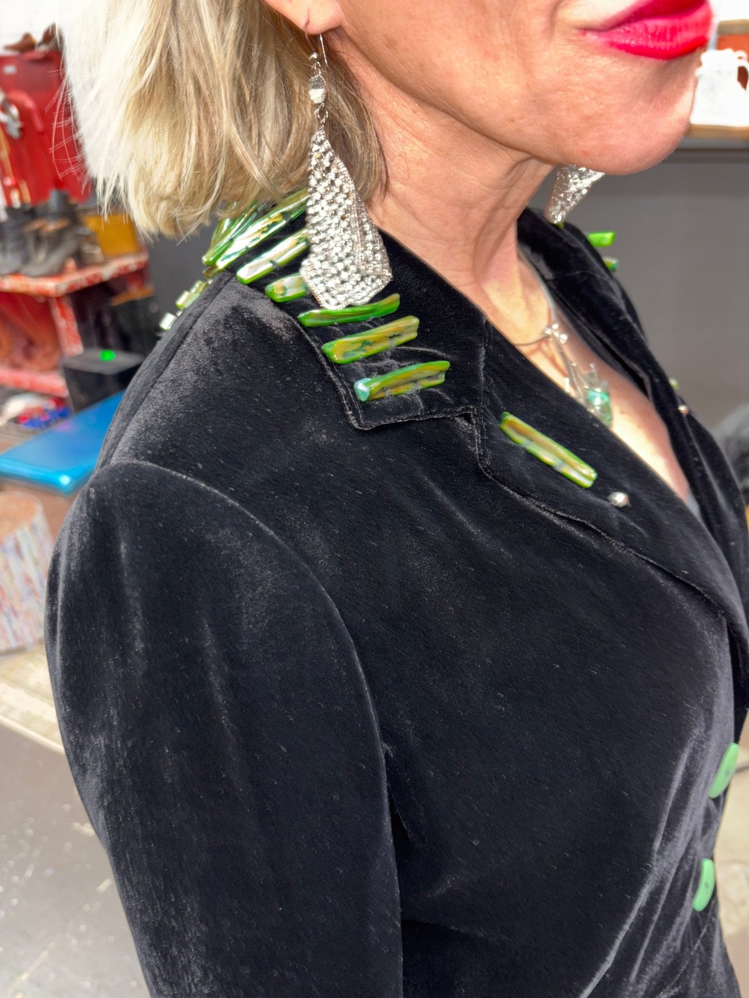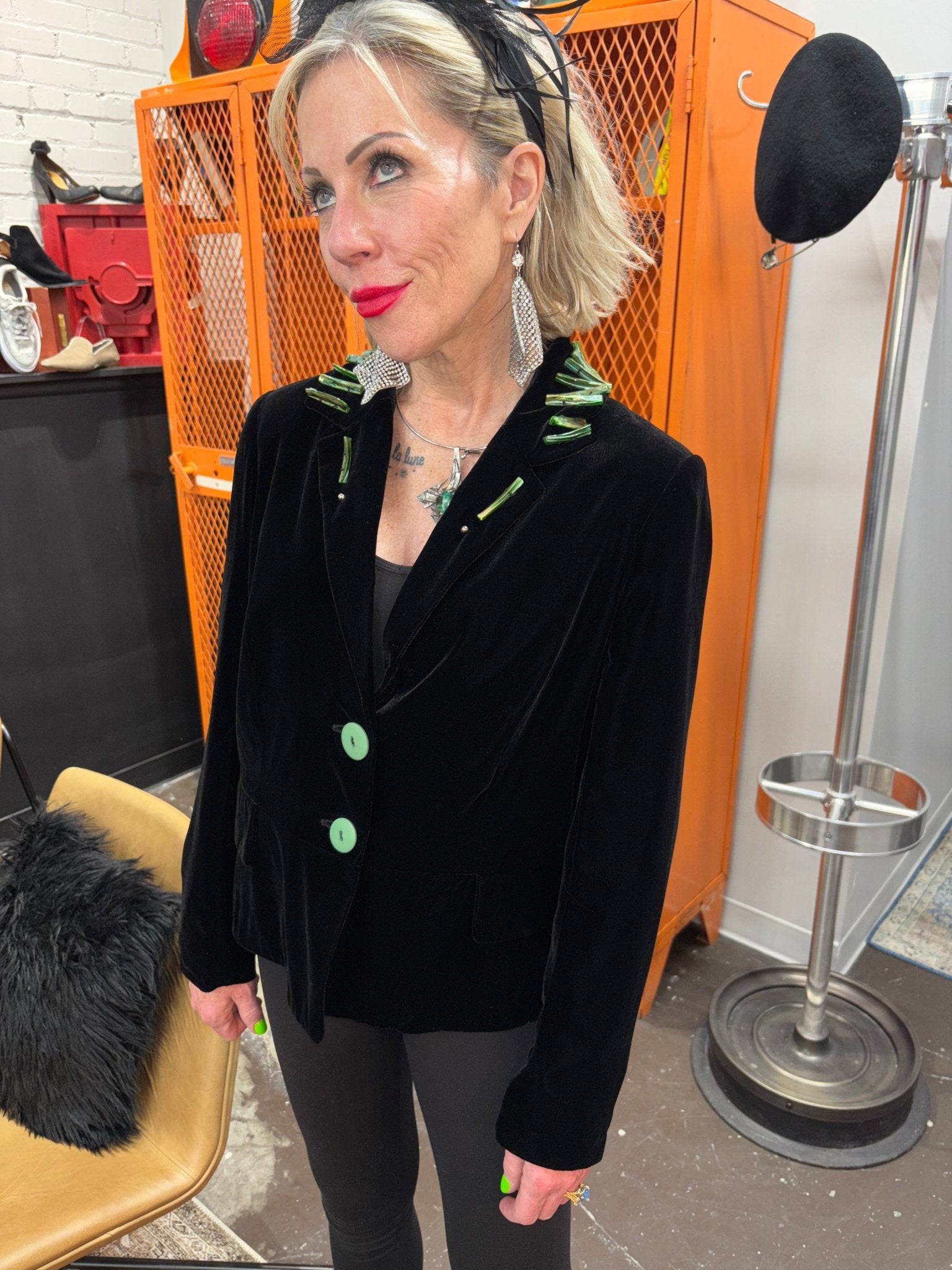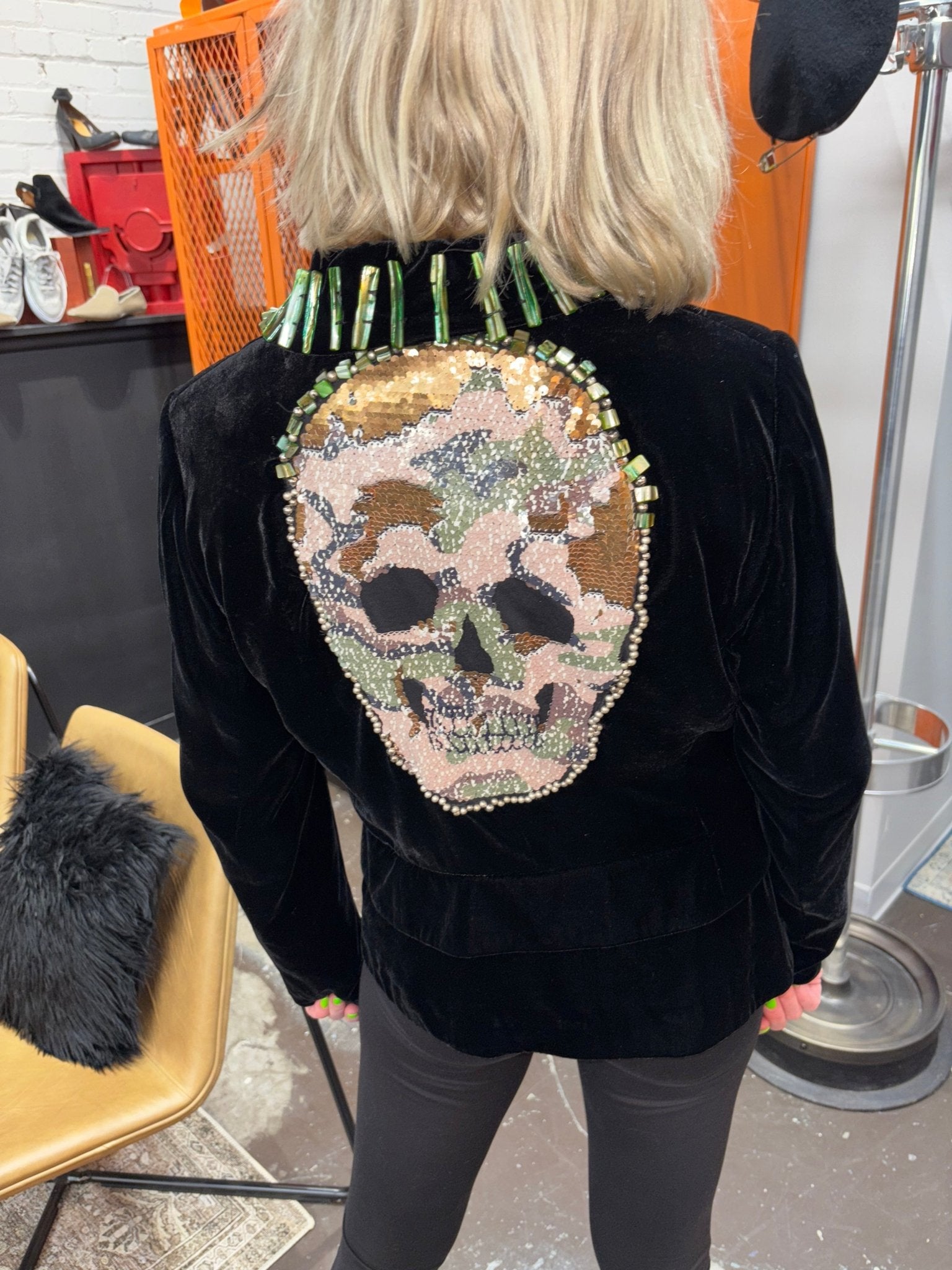 Luxury Punk Velvet Jacket - Apple Green Buttons & Cameo Sequin Skull