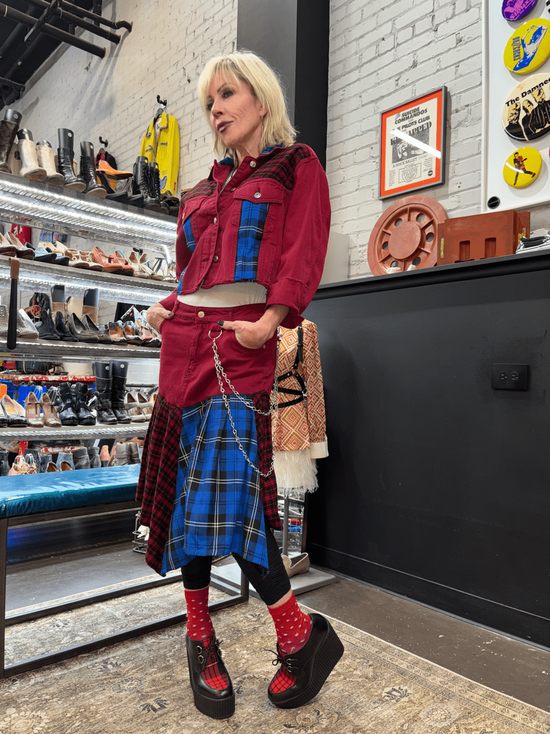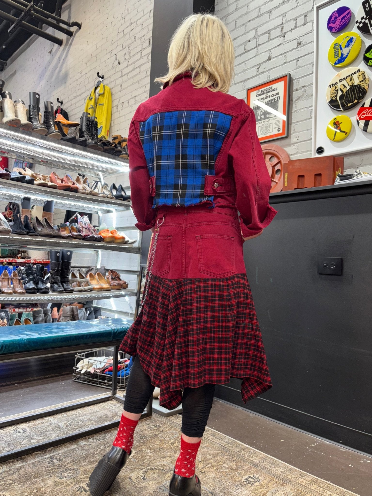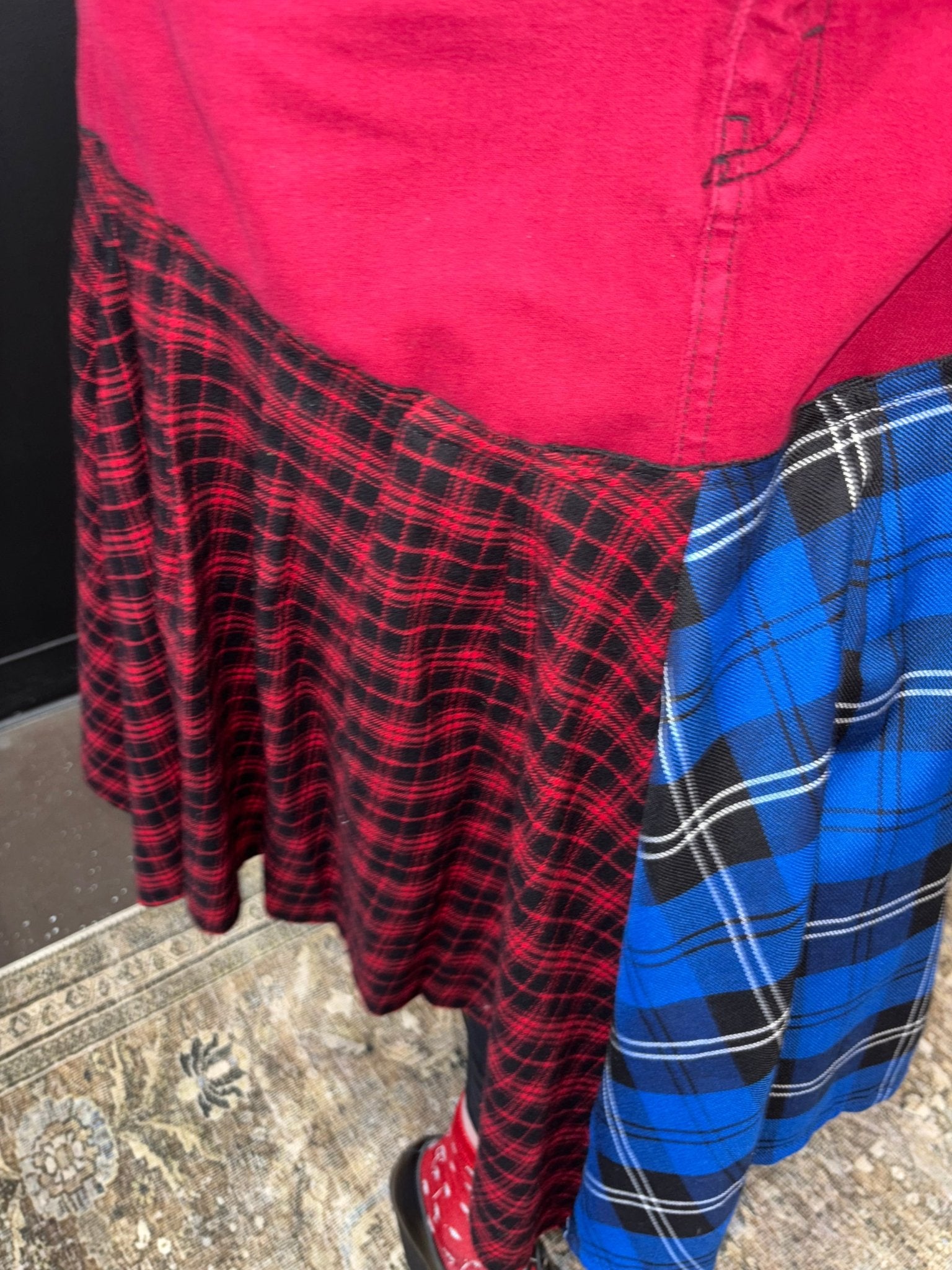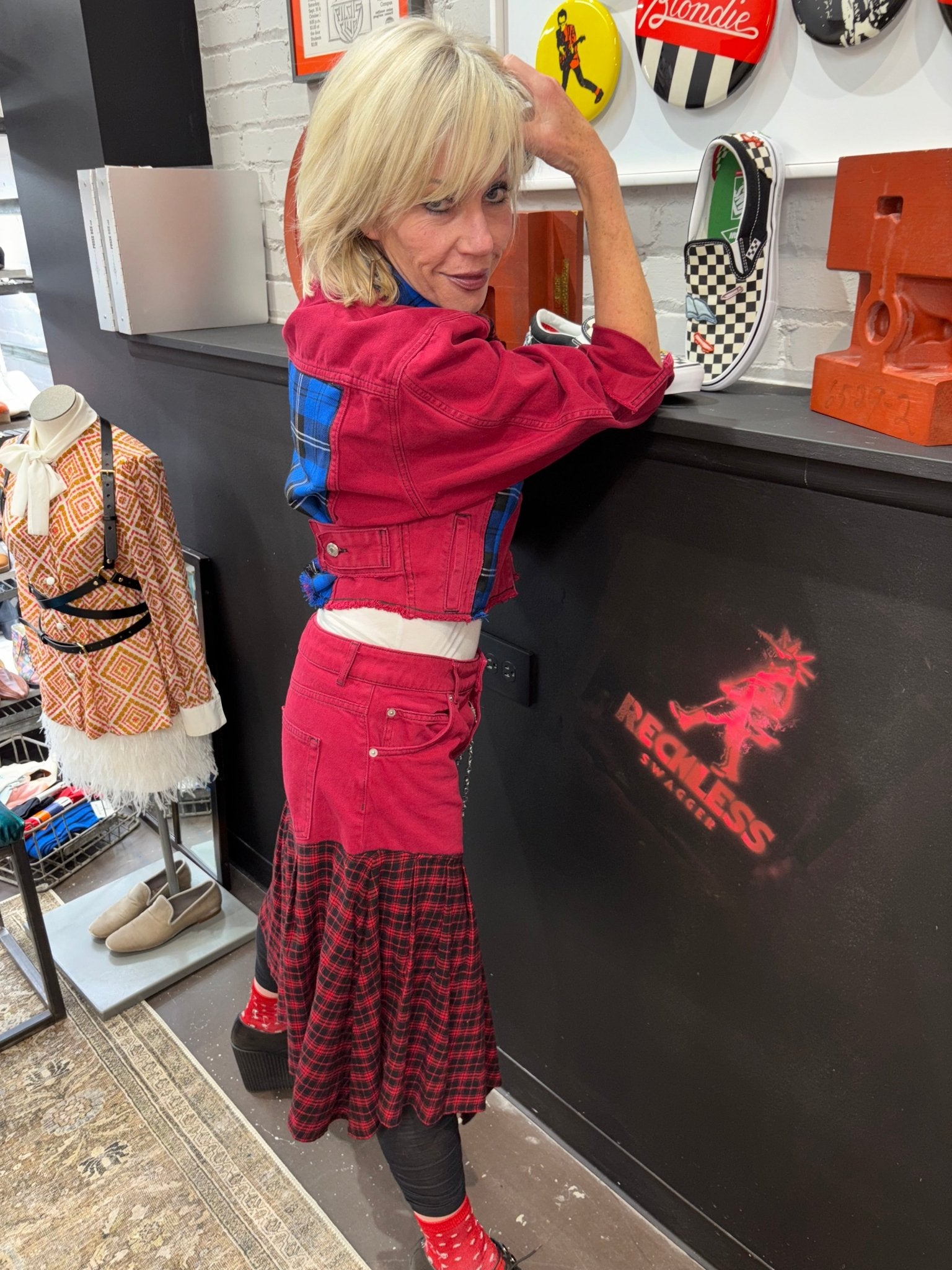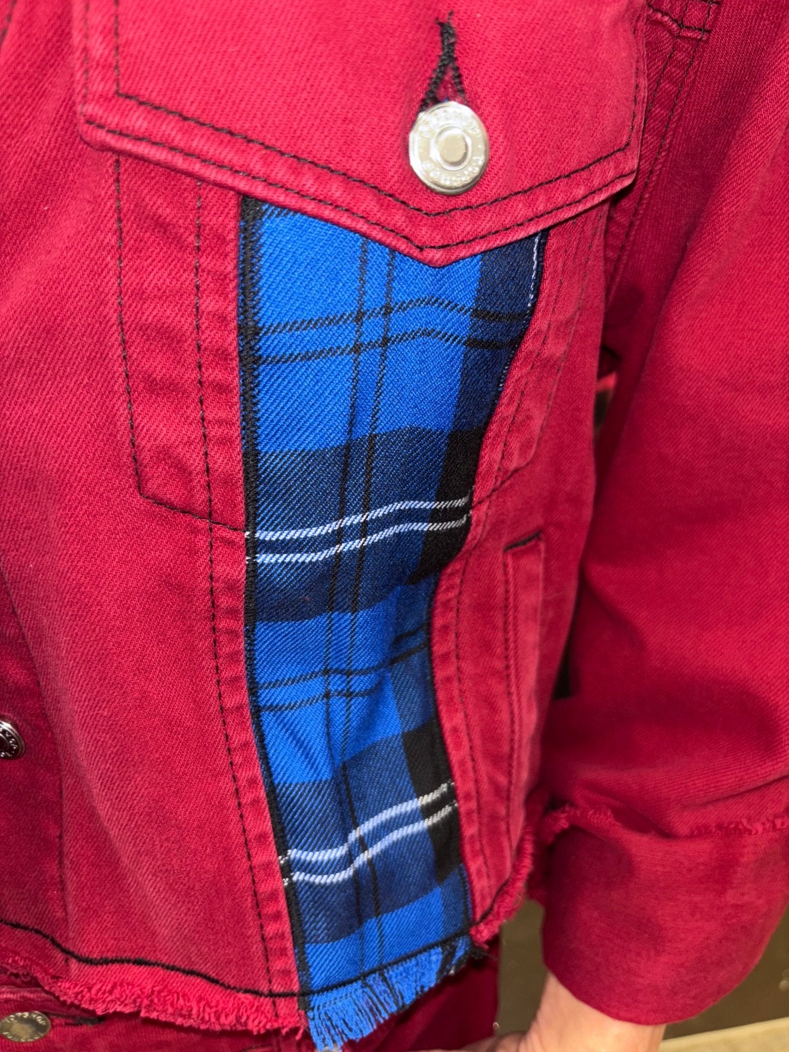 Red Denium Suit with Red blue Tartan