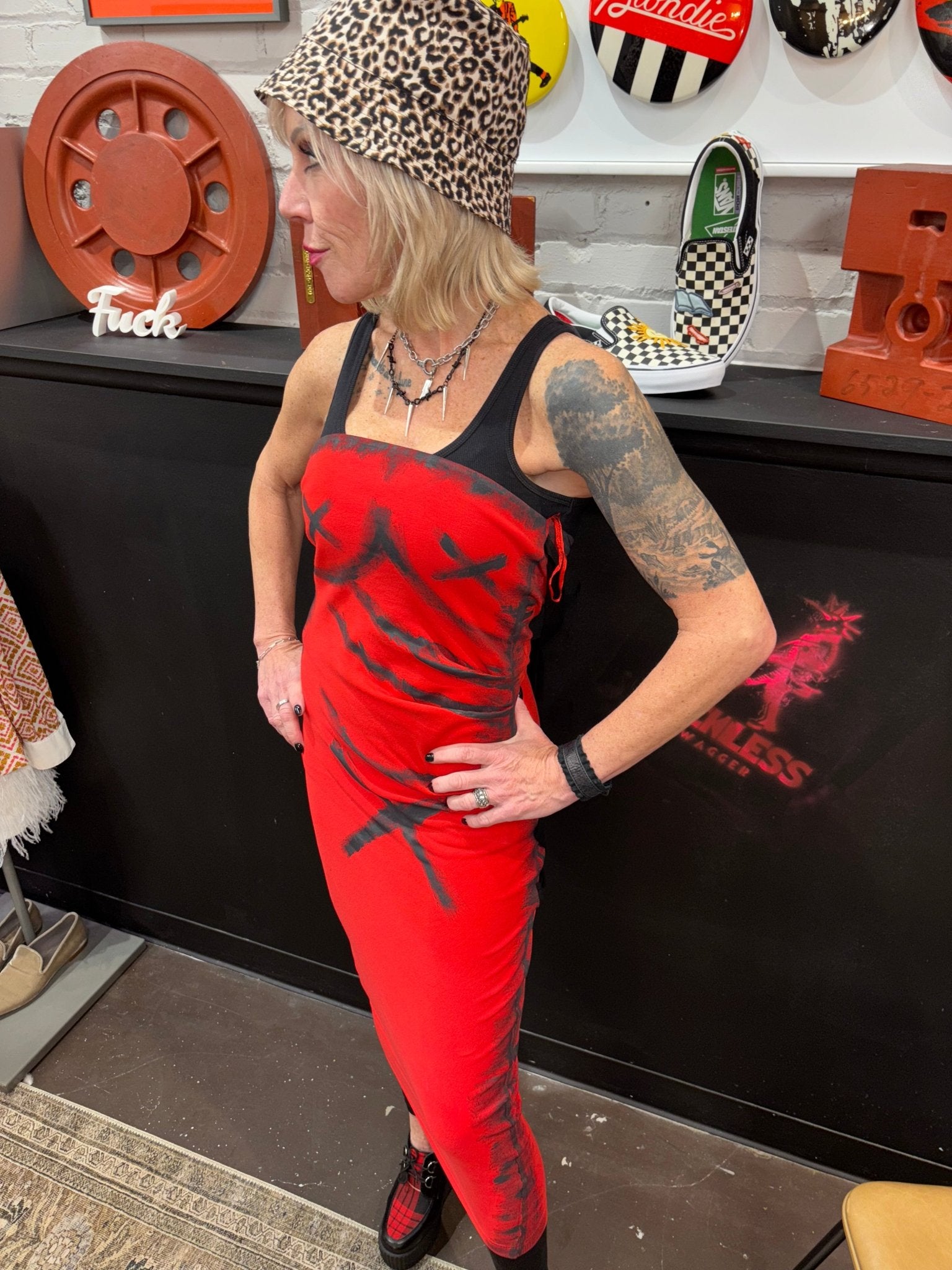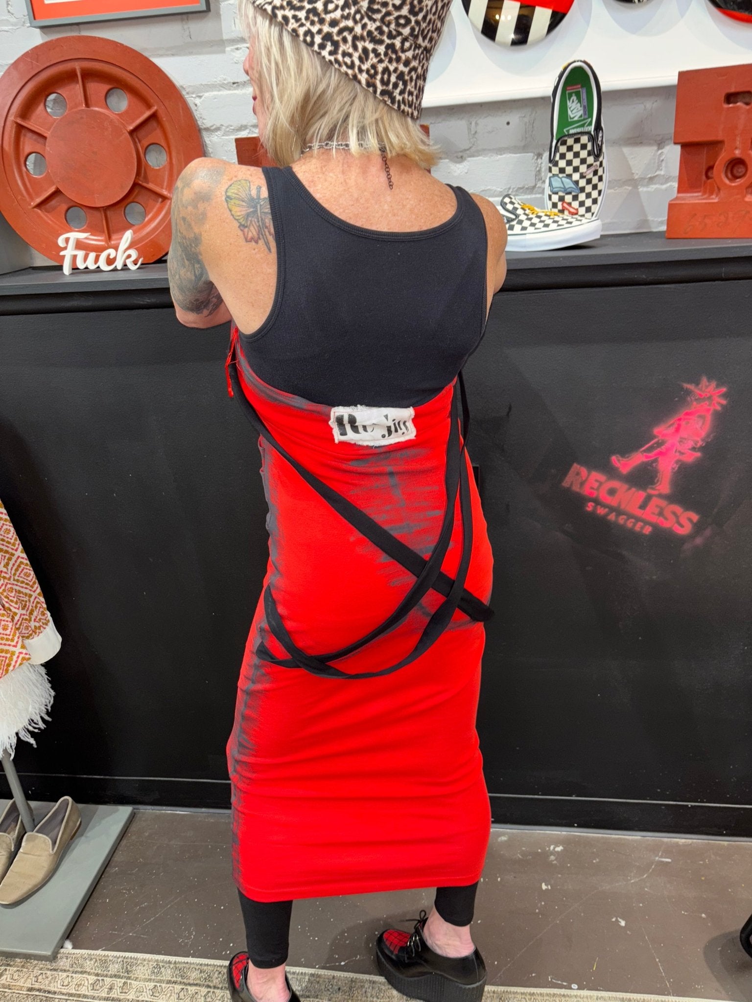 Red X Bondage Tube Dress - Edgy Paint Splatter Design - Reckless Swagger