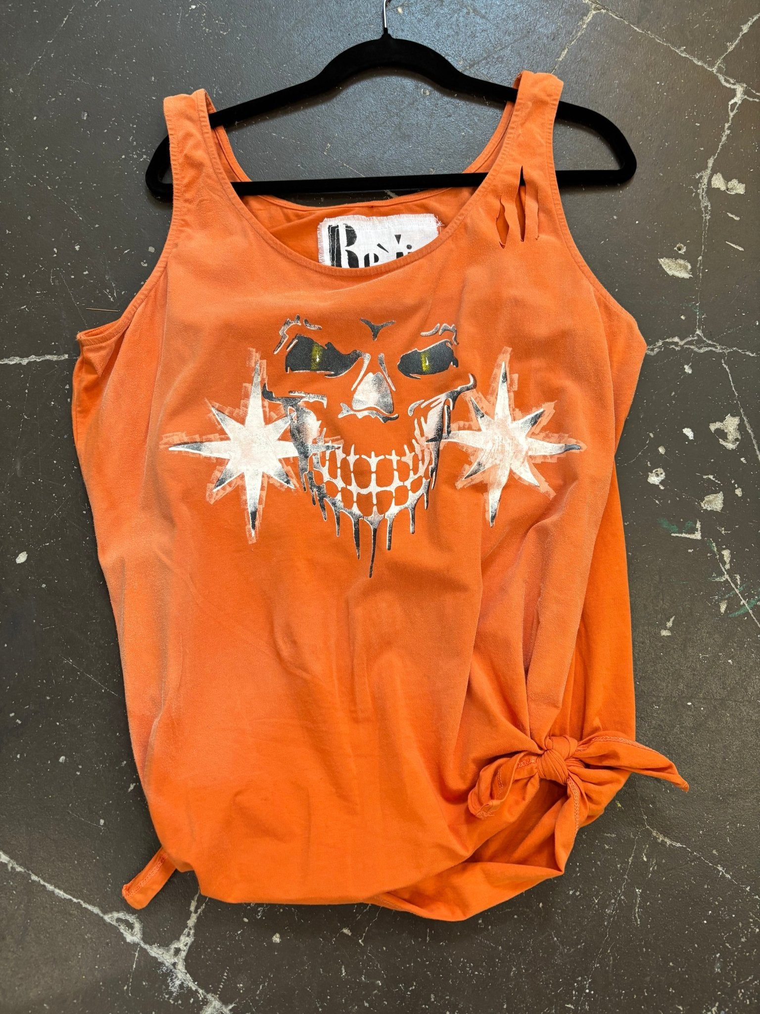 Reckless Swagger: Upcycled fashion meets punk rebellion. One-of-a-kind, Painted Skull Tank Top redefine sustainable style. Stand out. Refresh your wardrobe