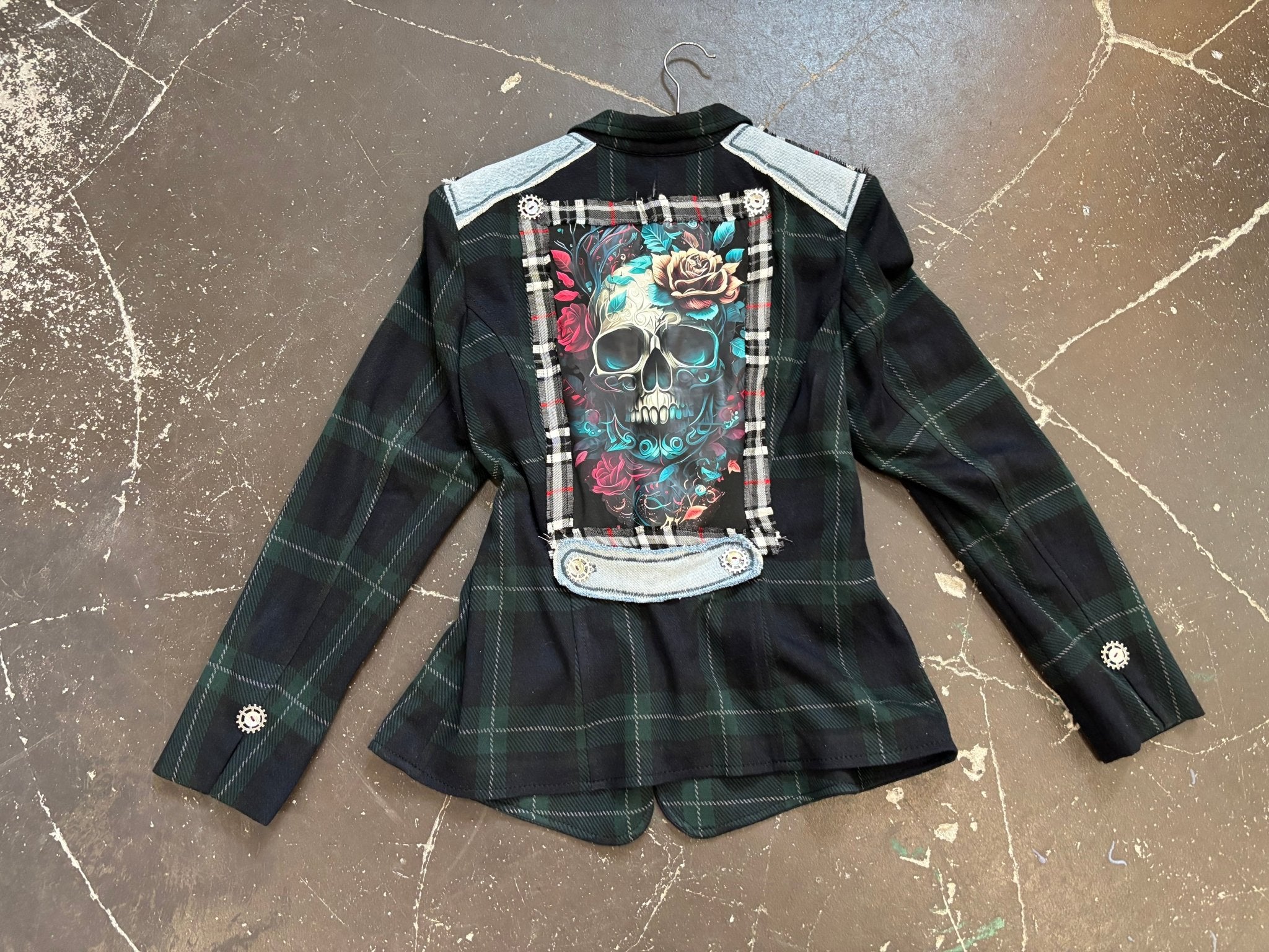 Wrap Ties Jacket - Tartan & Denim Steampunk with Gears & Skull Details