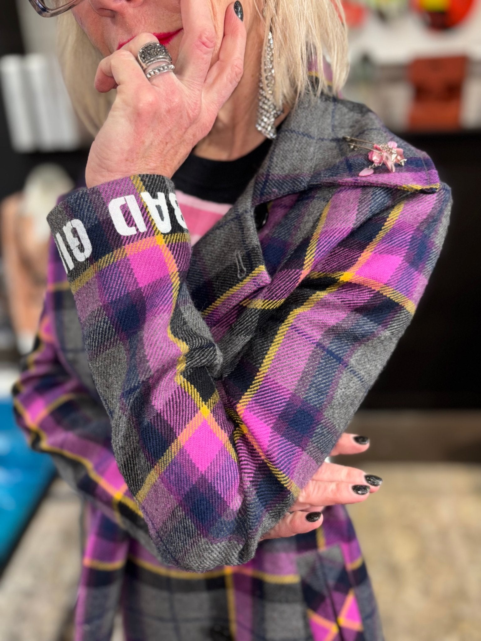 Ted Baker Purple Tartan Pea Coat – “Bad Girl” Statement Coat